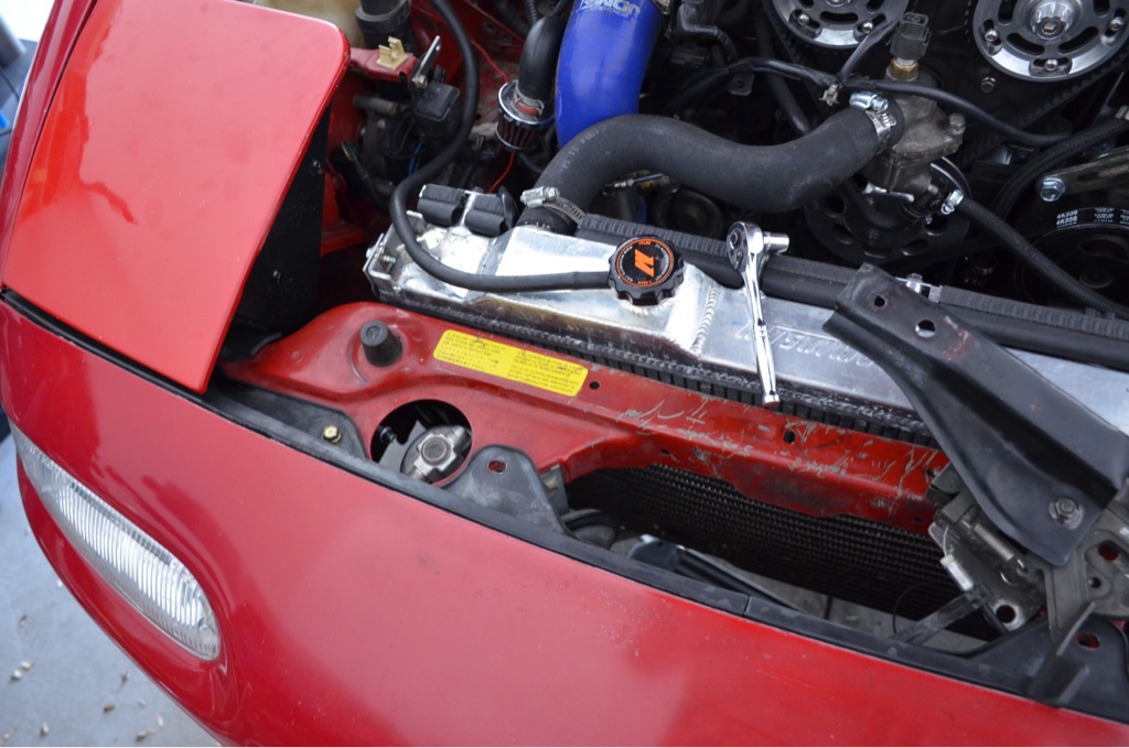 The condenser was just sitting waiting to go back in, I also put the coolant reroute in today as well.