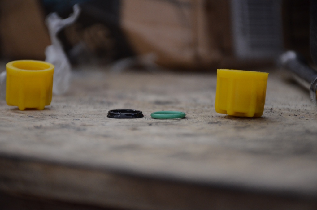 To show you a comparison of the orings that were in there vs the new r134 compatible ones. Mine were pretty beat! Just like any old oring mine were flat and a little frayed as well.