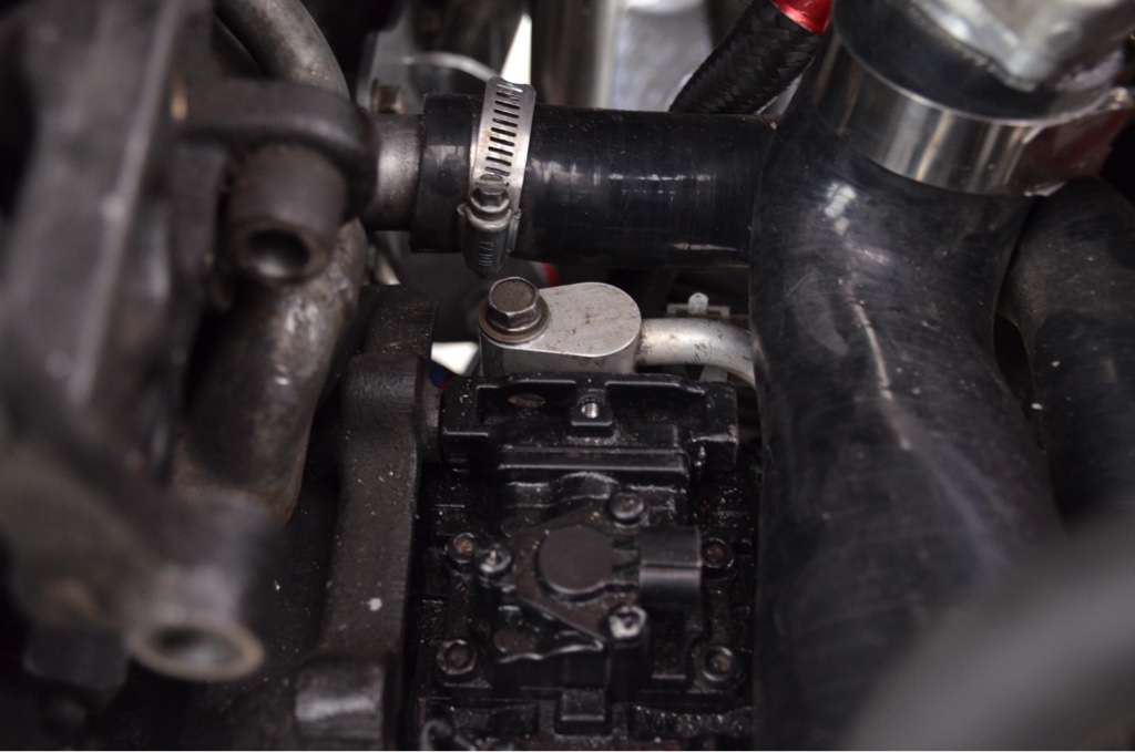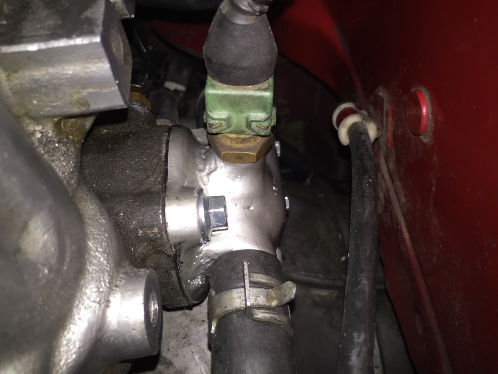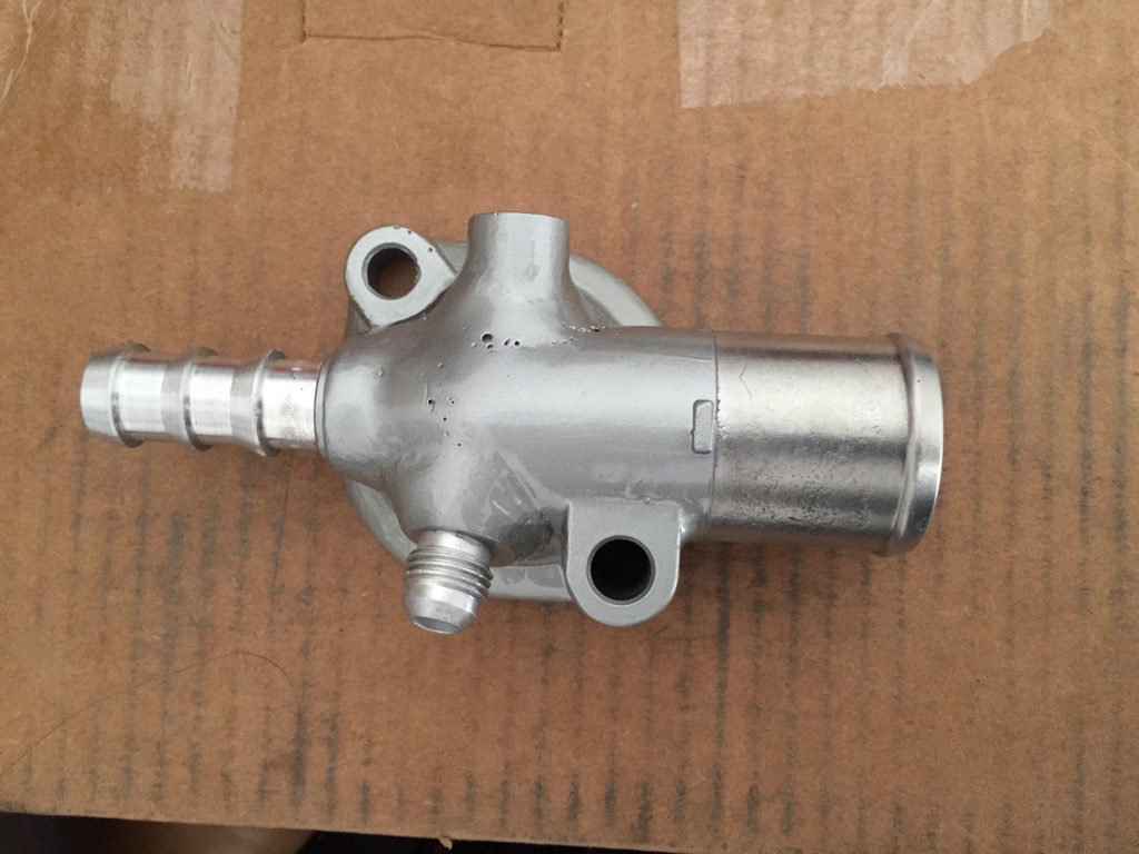 I have an inline thermostat I forgot to take pictures of but that's in there too. So I need to get the back bolt off and replace that too, but the turbo will still be watercooled with the -6 an fitting, I can still have heat if wanted, and makes life easy.