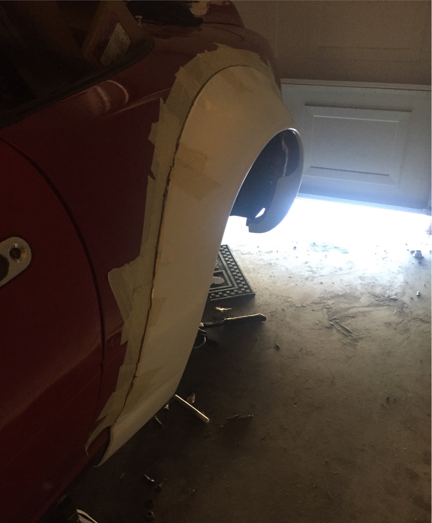 I get the tape out and lay it out on the fender and trace it all out and such and start drilling. No problems. Then I forgot what size rivnut fitting I needed. (I needed 6mm) so I just went to harbor freight found one looked good and kept going. Got home and it looked like it was used cause it had a fitting stuck inside but then I go through each one and none are right.