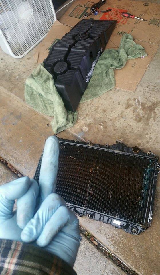 The radiator was from a different car I think, as it was completely brass, and complete with several leaks and full of rusty tap water and what im guessing was some kind of stop leak garbage. I flushed the crap out of the engine for at least half an hour.