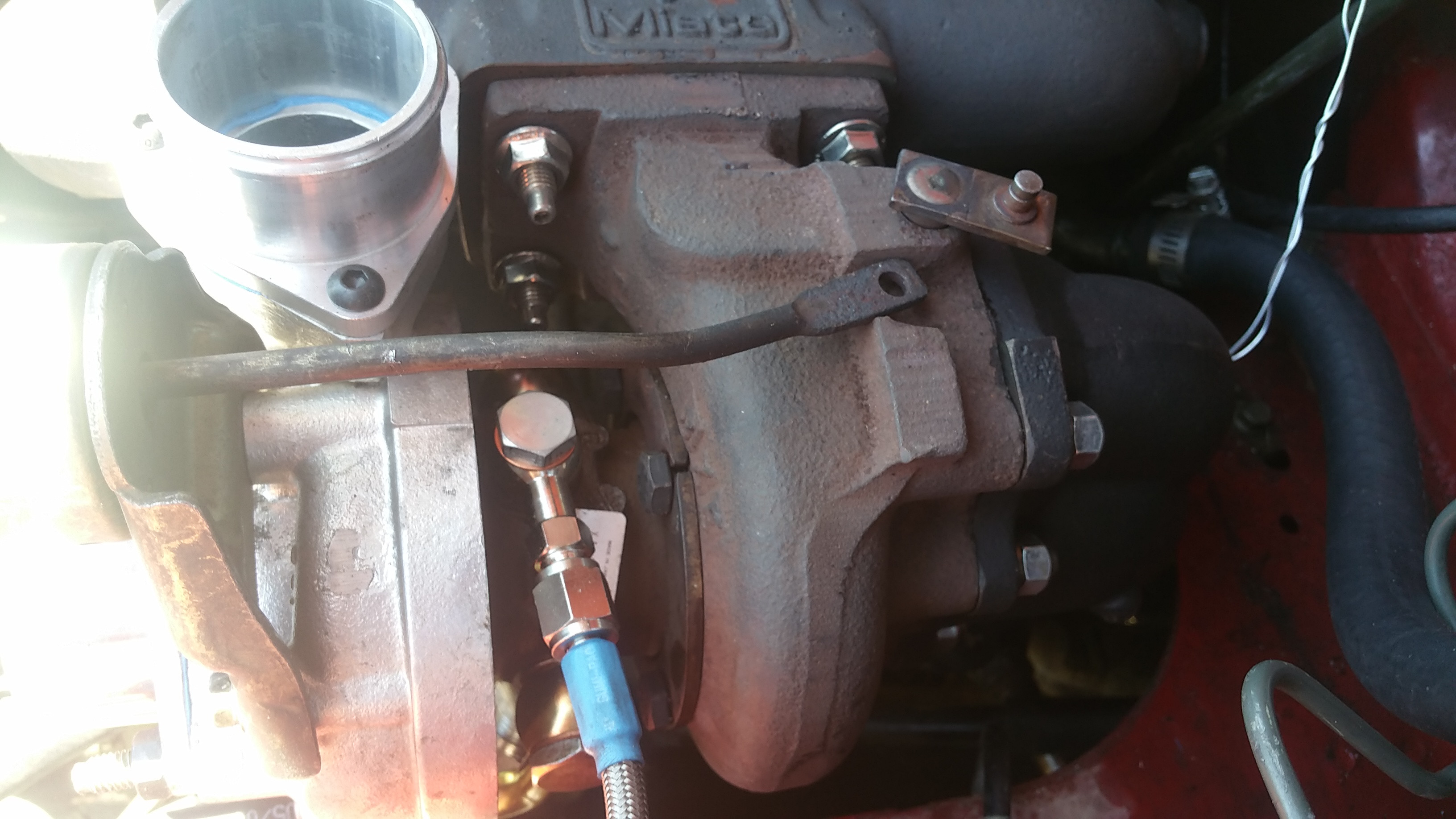 I got the kink fixed and then tried to take the car for a drive around the block with the wastegate wired open and the stock intake hooked up. I threw a timing belt a block from the house. I guess I deserve that for not doing it before deciding a turbo was a necessity.
