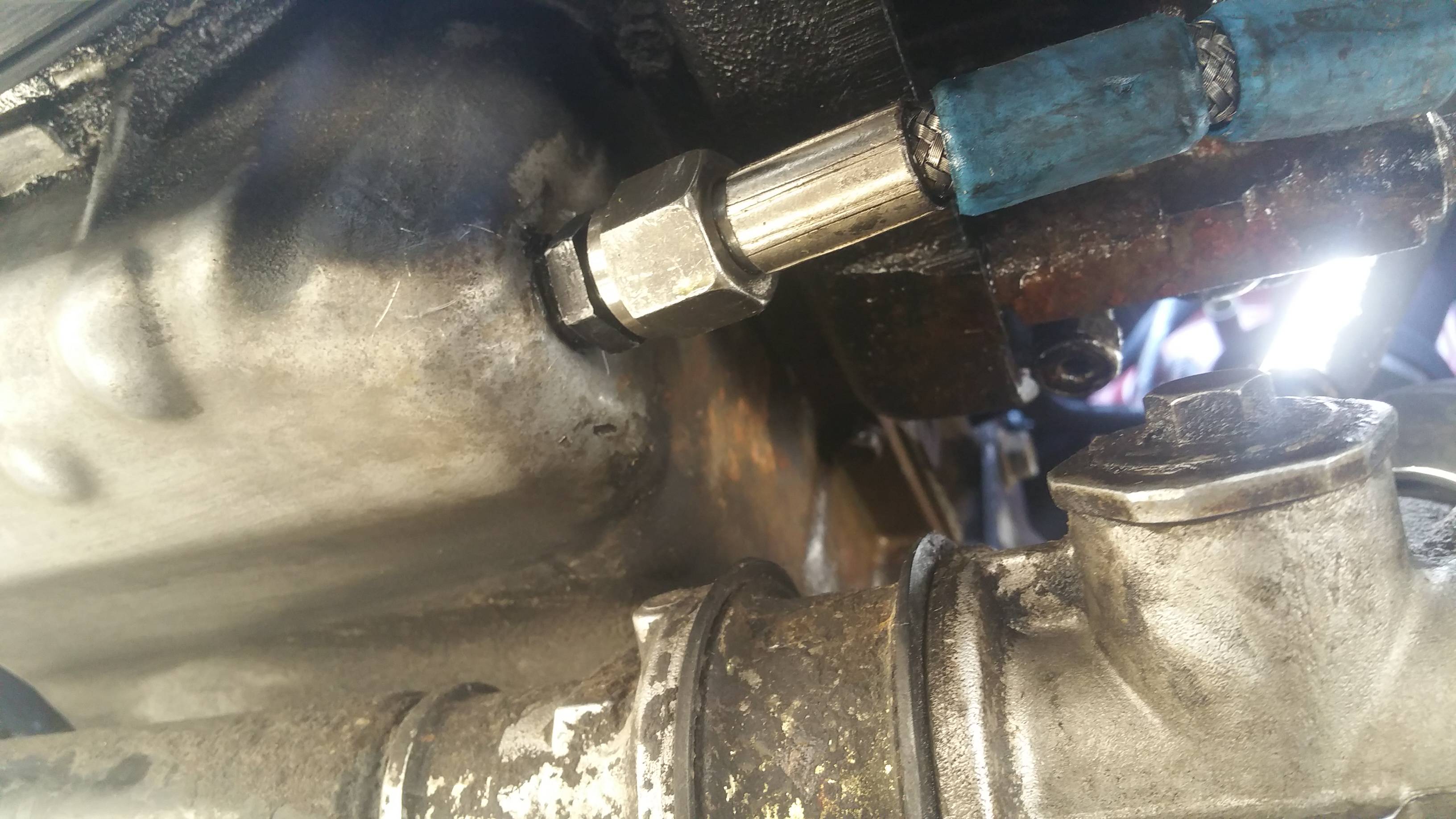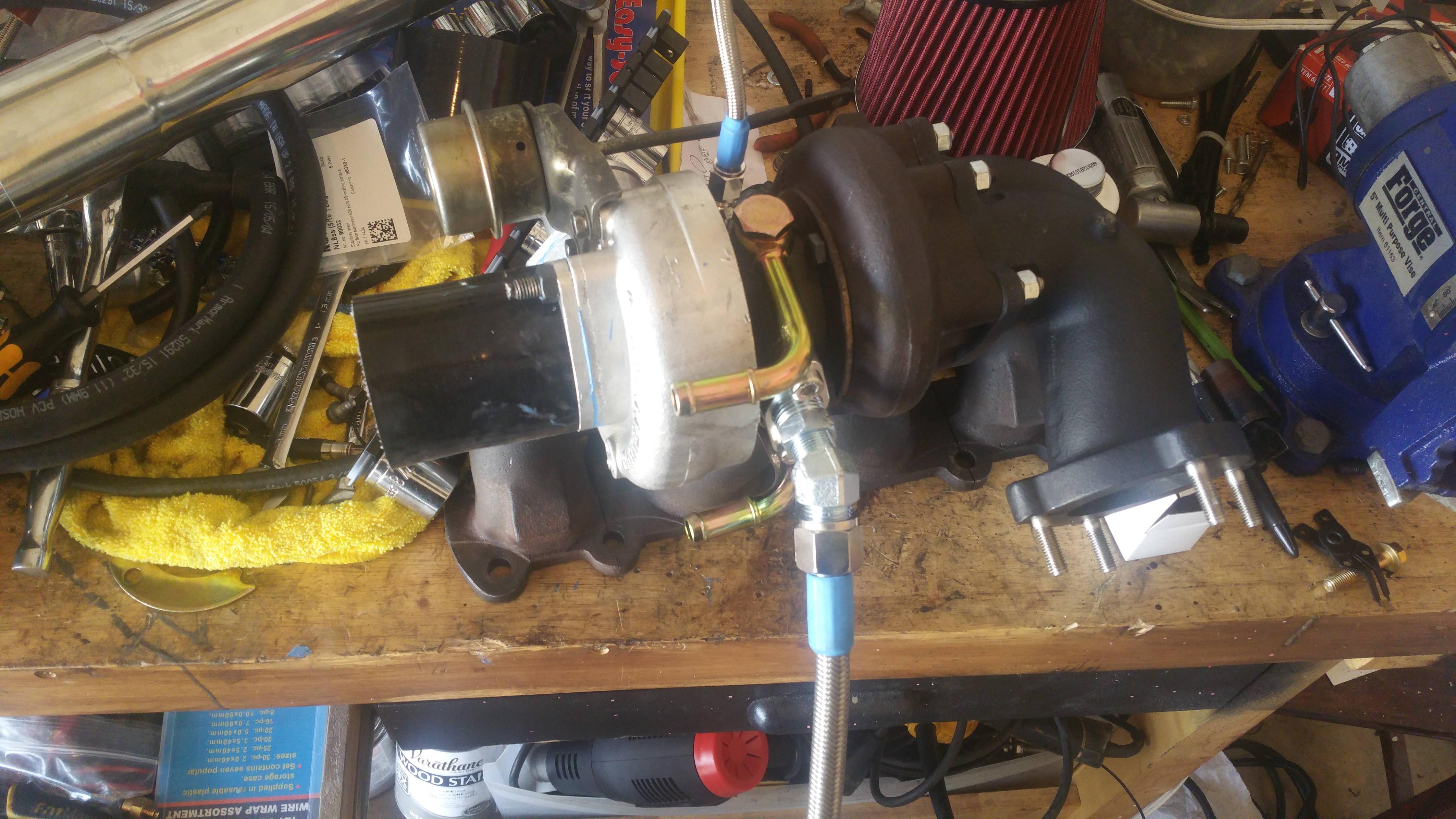The day I decided to actually work on the car was a bad decision. A giant hail storm was supposed to be coming through that evening, and my wife's car being the expensive one, I hurried and drove the car out with the wastegate wired open and parked it. The storm passed without any damage, but I had possibly blown a seal on the turbo as the drain line was kinked and oil had to go somewhere, out the exhaust from the turbo as it was.