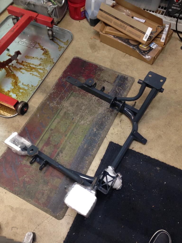 First piece of the puzzle has arrived! Subframe looks great. Beautiful welds left and right, I'm hoping the tubular aspect of it also make's access to engine mounts and other things a little easier. You can see the offset engine mounts, much different than a Miata. Rest of the kit should arrive "1st or 2nd week of January" according to the K-Miata peeps.