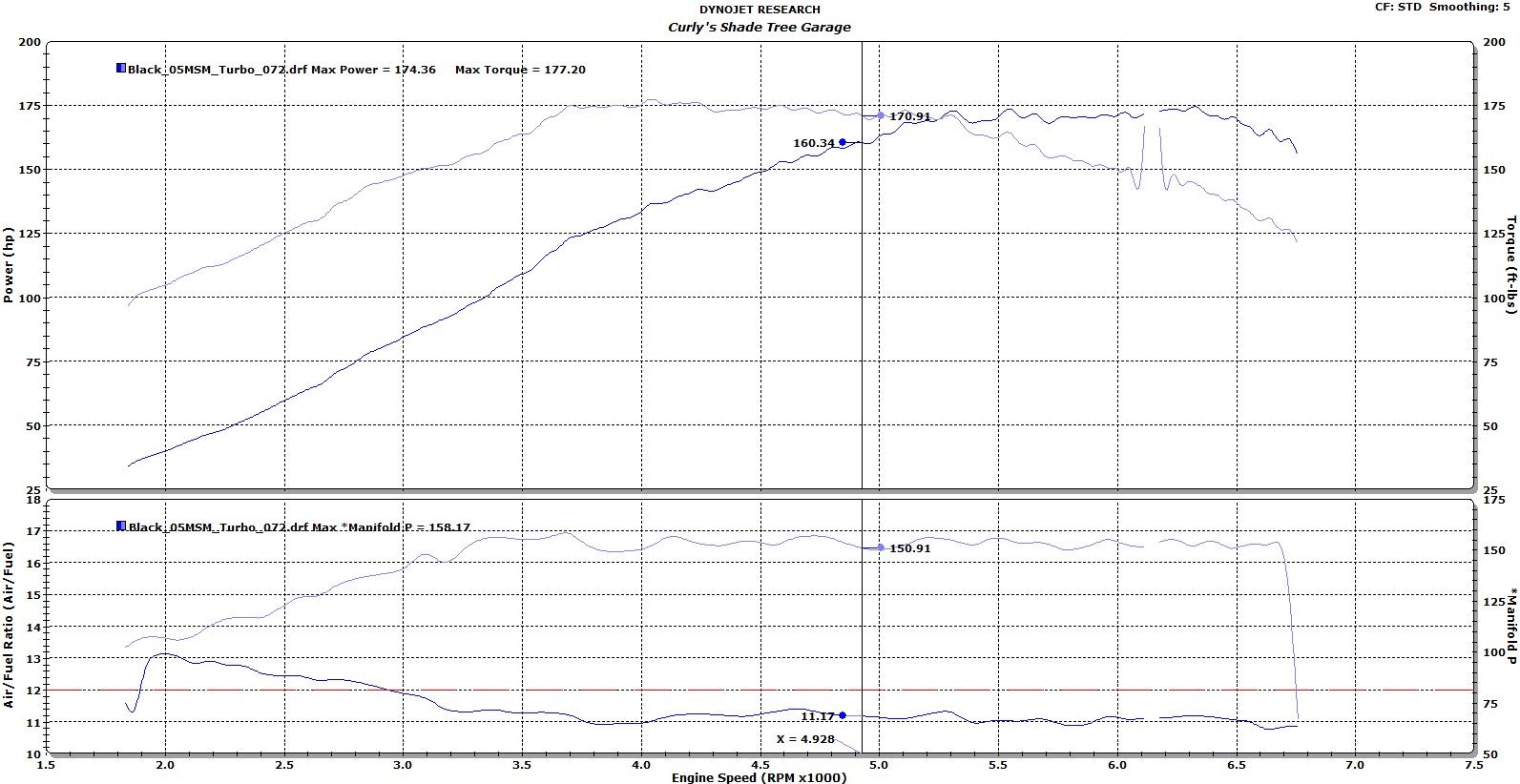 Glad to hear it's back together, and thank you for the kind words. I'm always leary of engine builders. Reputation or not, I always feel like my engine would be the one built on a bad day by the intern's interns. Add to that the complication of cylinder bore, piston ring gap, etc. I'm not an expert builder by any means, but I at least I spent no money on assembly and only have me to blame. And when one goes south (like yours Duane), it's an amateur build on stock pistons so it's not a huge surprise if and when they go, especially after the abuse that happened between my possession and your ownership. I'm finding that the MSM turbos do NOT like to be pushed above ~210. I'm glad you upgraded to a different turbo and manifold, and now have the safety of the ST pistons.