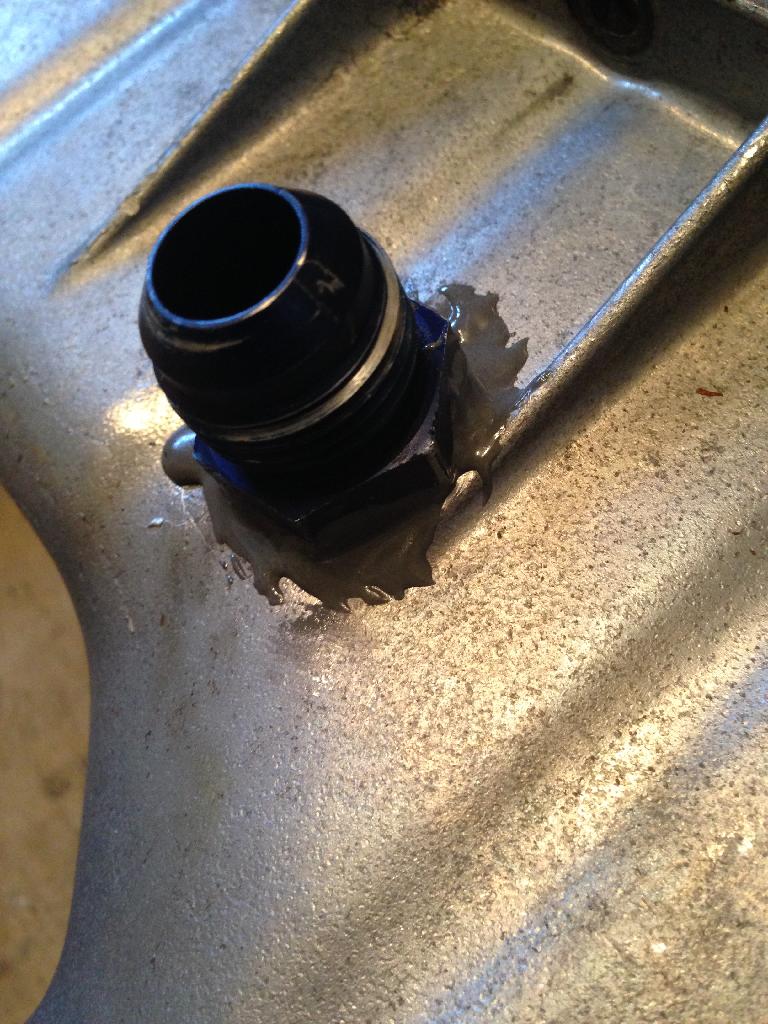 First, I JB welded my oil drain fitting. Hopefully this sucker won't go anywhere.