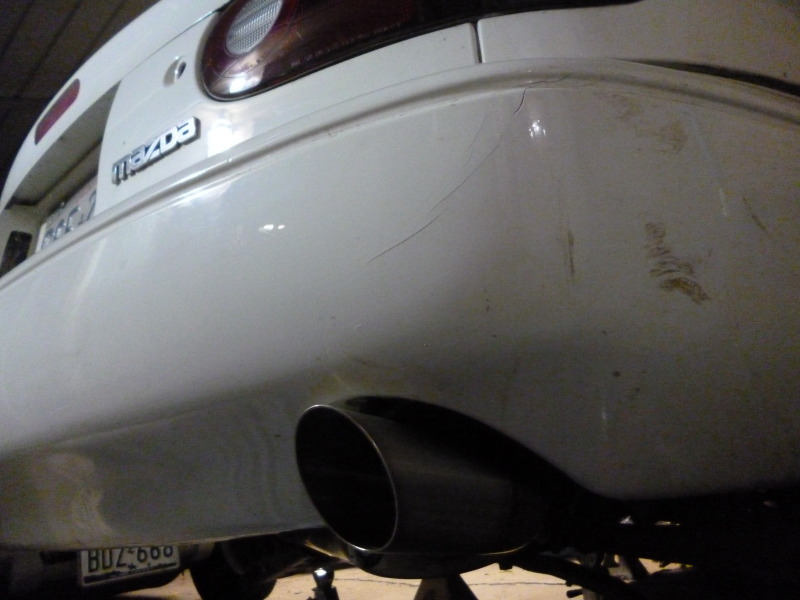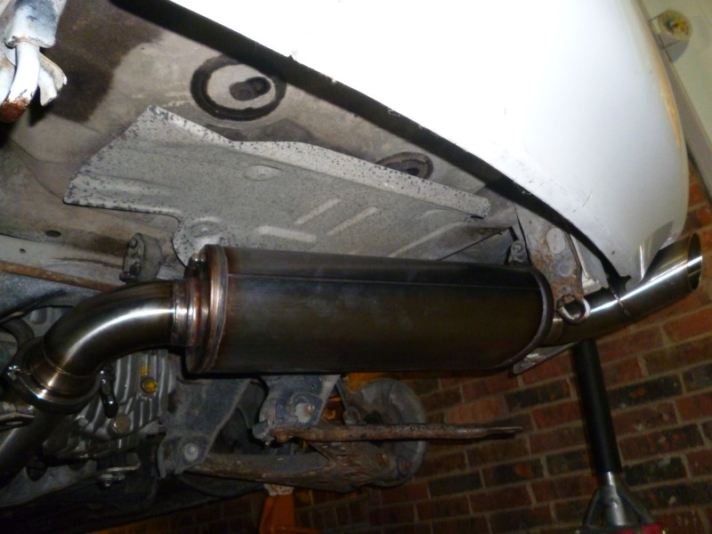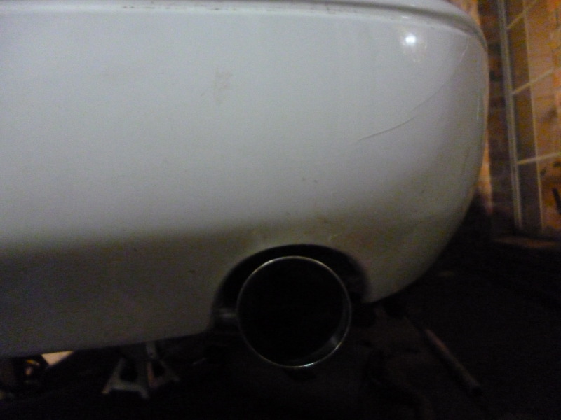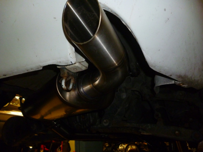 Installed. This is as of 11:45am, so a total of 98 minutes from sleeping to a finished installation. This was with the car on the ground to start with, and a break to make the GF coffee and breakfast. And yes, I'm a little worried about bumper-tip clearance. There's about 1/16-1/8 inch clearance there.