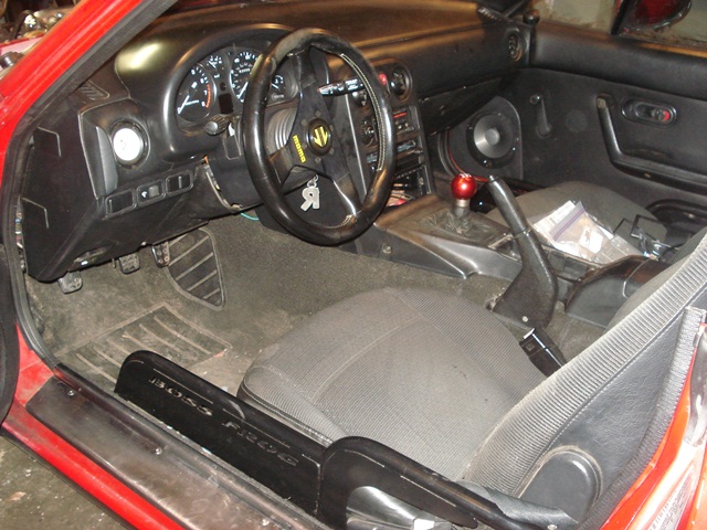 For the work on the interior, it needs a lot of attention. It is, well, it's dirty. It needs a thorough cleaning. But before I do that, I was able to get my radio installed. Nothing special, an Alpine deck with 6.5" Infinity's. The steering wheel is a Momo that I got when I was in high school. I had it on my last car for a few years and I loved it, so when I sold my last car I had to take it out. I was able to get a new top on it with the help of a few friends and it came out pretty well. It is really tight on there, don't think that I will be taking it down until spring time!