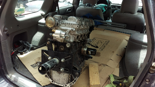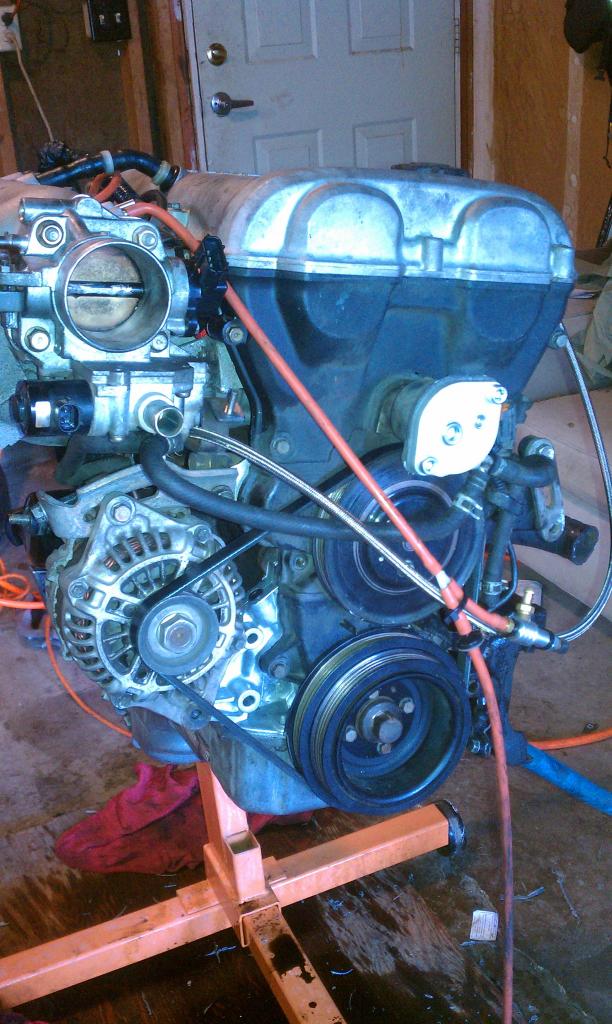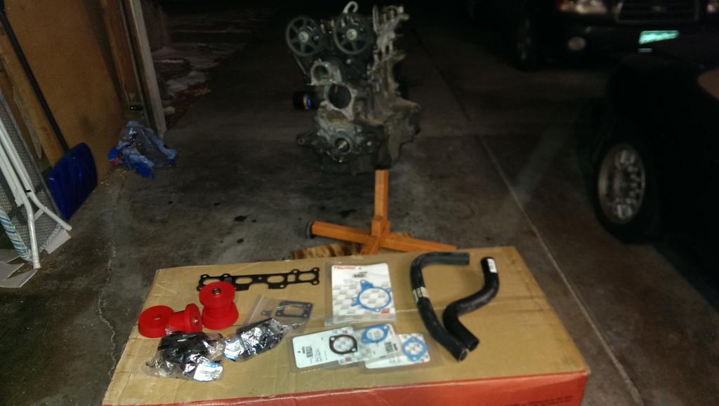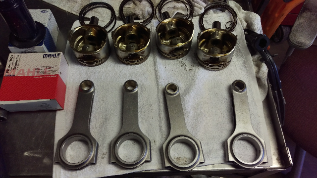 Put together with eBay rods and ARP headbolts, new rings, and new bearings. So now basically I have a stock '94 motor with ARP hardware and forged rods. I'll be on the lookout for a 99 head once I get it running solidly again.