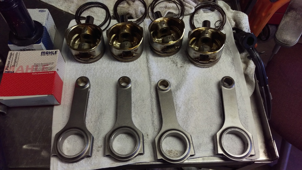 I've pulled my blown motor apart and the head is thankfully ok, it was custom ported and polished with 1mm oversized valves so I'm damn lucky that it's not all smashed up. I think my plan will be to run the stock junkyard motor and build up another block with my nice head and maybe a set of ebay rods? Copying Fireindc much?