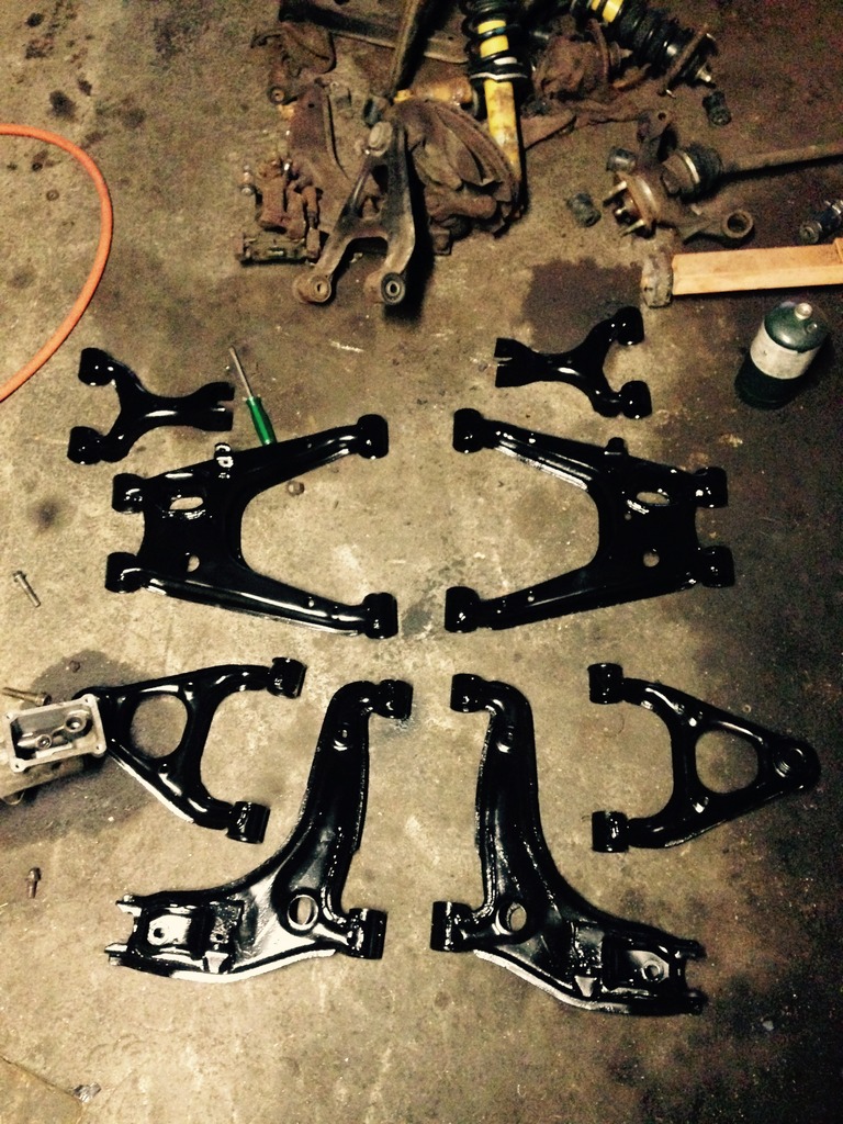 Ran a few more PA hill climbs and autox events. Decided that I was no longer happy with the tein suspension and wanted to upgrade over the winter. Enter big grip kit. I pulled all the control arms, cleaned, painted and zerk'd. Swapped the front sway bar and installed all coils. Also picked up a set of 15x10 Jongbloeds and 245/40 Maxxis RC1s since the 6ULs weren't out yet.