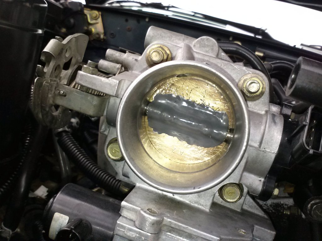 After reading the horror stories of broken throttle shafts and motors eating the throttle plate screws I decided its not a bad Idea to try and protect myself if my TB shaft busts. used JB weld and scratched up the surfaces on the TB shaft/plate to give the JB something to grab on to