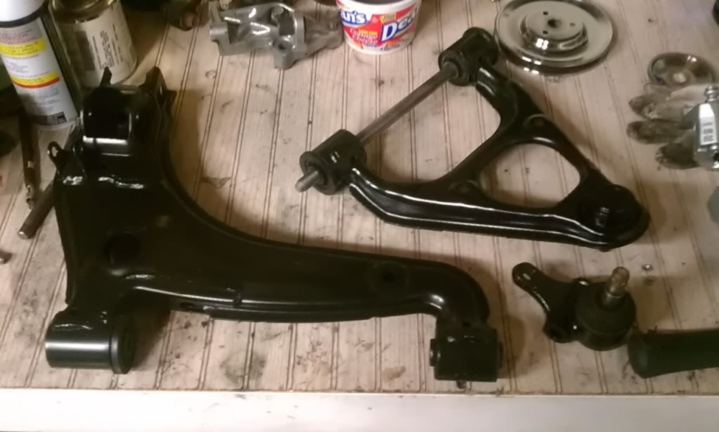 I took a break from polishing and broke out the trusty old pickle fork. Disconnected the suspension inner workings and am starting the cleanup process. EVERY PART ON THIS CAR is coated in a nice 1/4" layer of Texas dust. But I'll take dust over rust any day. It's gonna look great after I clean and paint everything. I also put the injectors and fuel rail back on. It stands out a little more than I hoped. but we'll see after I get everything else put back together. On another note, during my reassembly of the crank boss, I found that my clutch is weak and in need of replacement. Time to drop the tranny...