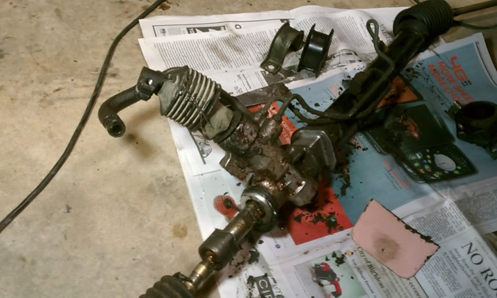 I just dropped my power steering pump and rack. Holy crap what a mess. The boots are all but gone, the top seal is leaking, and it's all covered in a 1/4" thick layer of grease and dirt. I've go some real work to put into this.