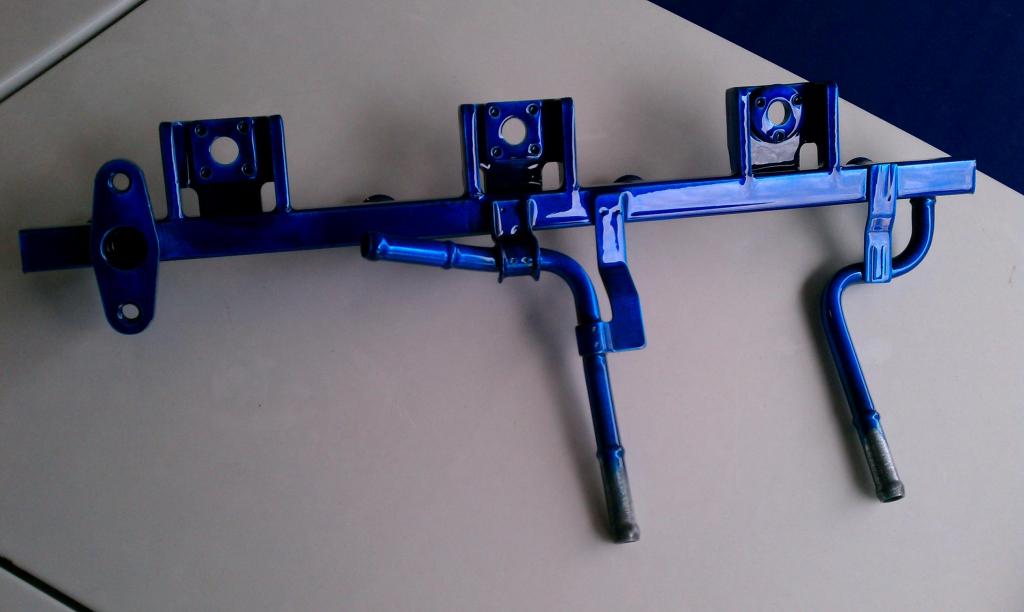 Painted for now. I have all the equipment for powdercoating but as mentioned before, all of my equipment is packed up for moving tomorrow. I tend to do paint jobs first to see if I actually like the appearance before I commit to the powdercoating. Paint comes off easily, powdercoat not so much. I do have some pretty awesome powder colors though.
