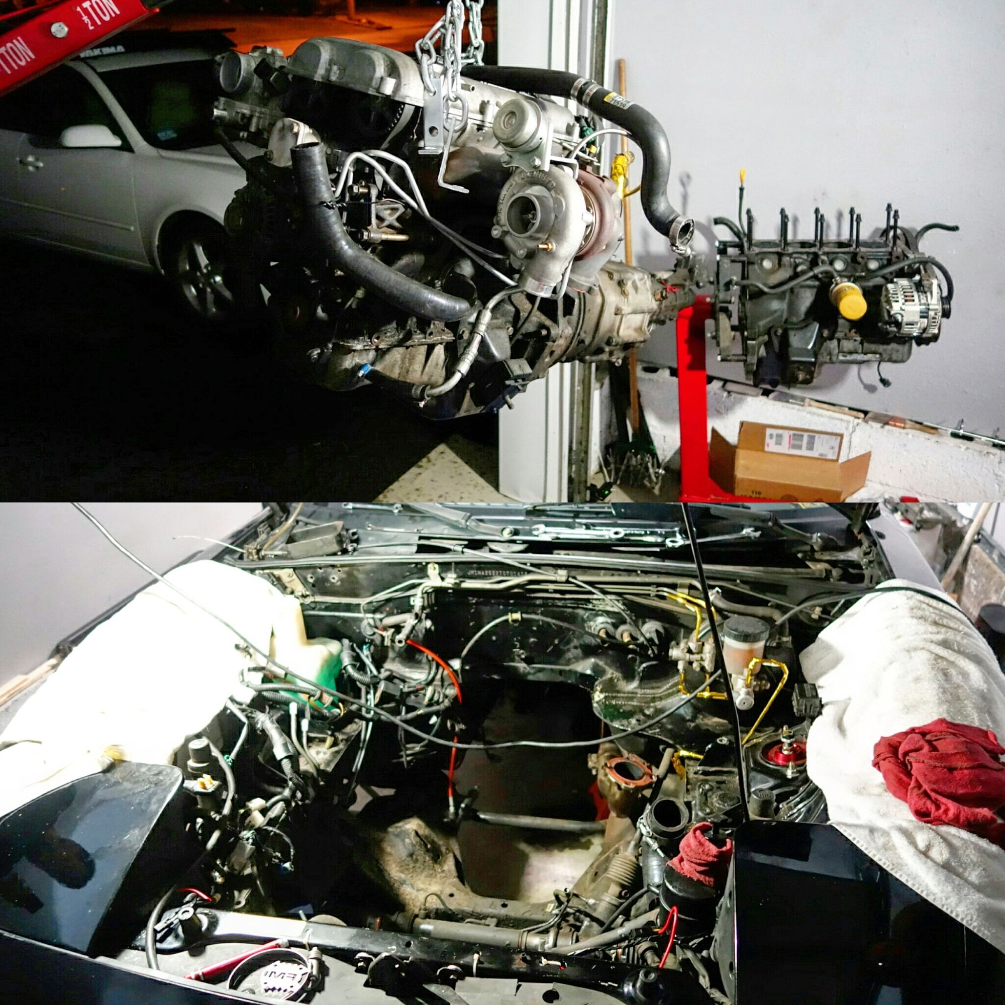My friend who's been helping me with the swap stopped by and helped me get the car running better. Timing was advanced a lot, probably due to the key way damage on the old motor. Anyways, out of the garage on its own power, hasn't moved in 2.5 months.