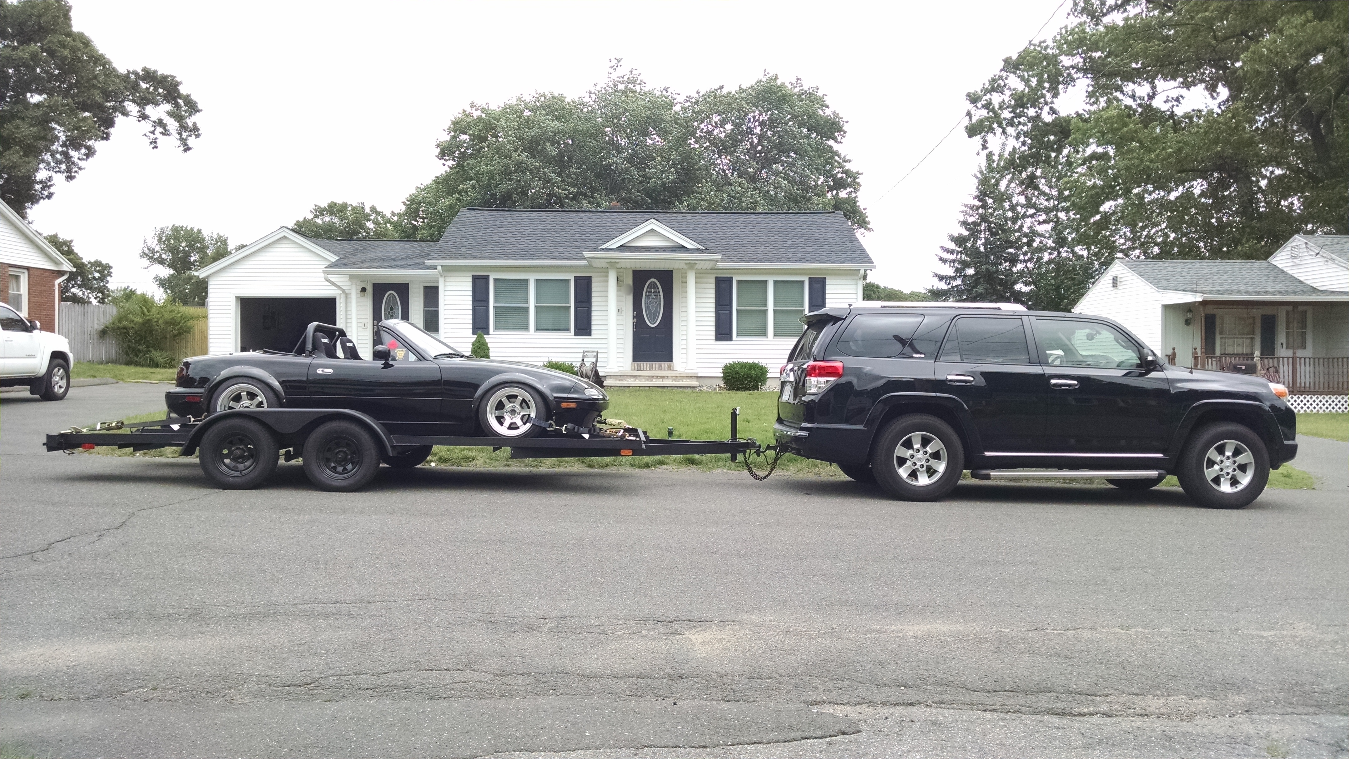 Also did some testing today. Car loaded up, set the tongue weight, strapped the car down, setup the brake controller (Tekonsha P3), and took it out for a drive. Truck pulls great, brake controller was perfect, and the car stayed planted on the trailer. All in all, I should be ready for the 2hr haul to Canaan, NH for Lock City - SpecialStage New England this weekend.