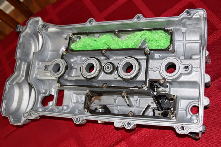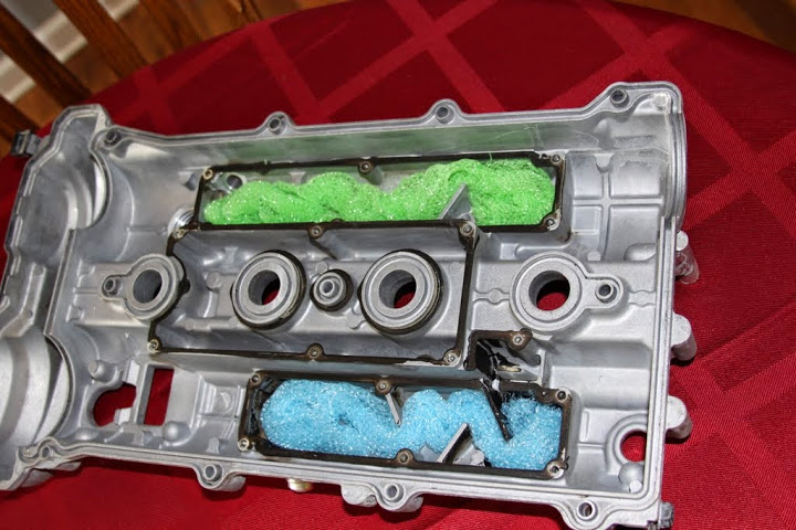 For now, here is what I did to my valve cover. I read somewhere on Mnet a couple years ago that people were filling the chambers with steel wool to help remove the oil vapors from the air being pulled through the PCV system. I felt like plastic was a better foreign material to have in my engine than steel wool. I DID clean off the old RTV and used Hondabond to seal the cover plates.