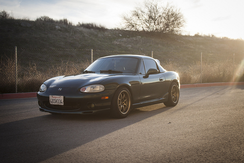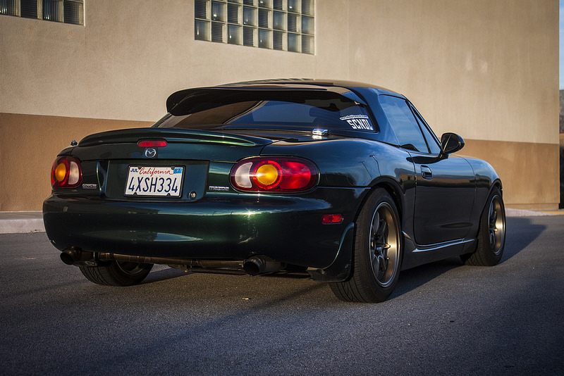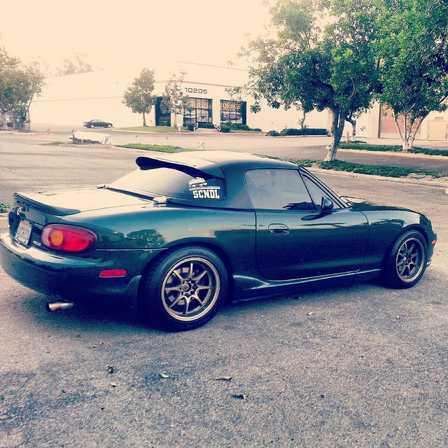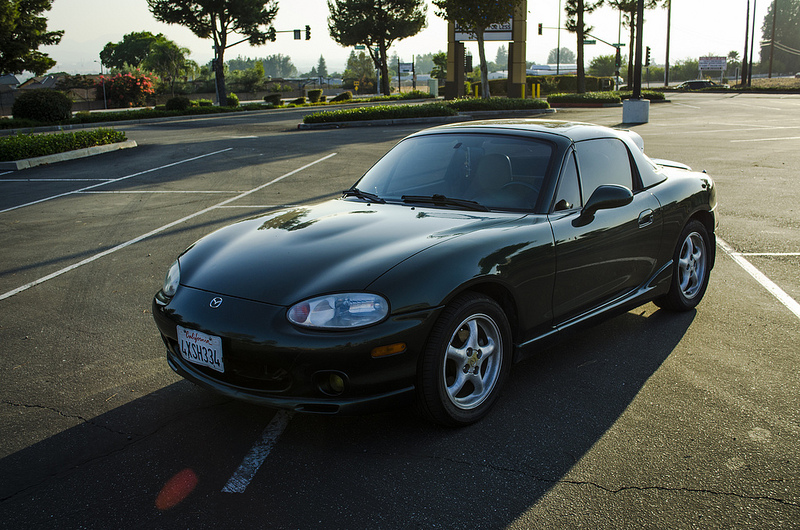 I bit the bullet when I saw a completely Stock Emerald Green Mica NB Miata. I fell in love with just the posting. The guy had it in mint condition and it came with a oem black hardtop. I was just a little skeptical with the 170k mileage but I just kept loving the car. So I sold my NA miata scrapped up some extra cash to get this 2000 NB LS Miata. When I went to go pick up the car, the Miata looked 20920390324 times better in person. It had the lip, sides skirts, hard top spolier, and duck tail. All in amazing condition. She started right up and the interior was a major upgrade to the NA. The car pulled beautifully and shifted amazing. The guy was pretty cool. He was a graduate Nurse from Cal Poly and he was selling the car because he just bought himself a 2012 toyota tacoma trd edition, plus he has had the car since 2008. The guy and his fianace seemed like a good set of educated individuals. We signed the paperwork, he gave me a beer. We talked about Breaking Bad and Game Of Thrones. And rode on my new NB Emerald Mica Miata. I was so happy with it and still am.