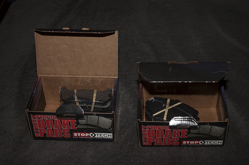 Next on to the list will be the pads and rotors. I went with stoptech high performance pads from reading good reviews from them and also the price for the front and rear was only 82 dollars. I'll also be getting blank rotors from Napa next week and i'll install the rotors and pads that same day.