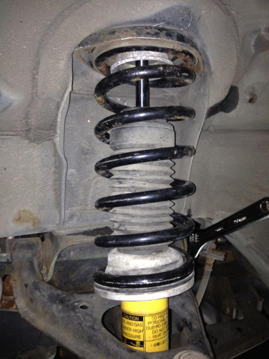 How did we get here? Now this is an excellent tip for removing a stock shock WITHOUT having to compress the spring. SO MUCH WIN <3 First corner with spring compressors took like 4 hours. This one took 20 minutes.