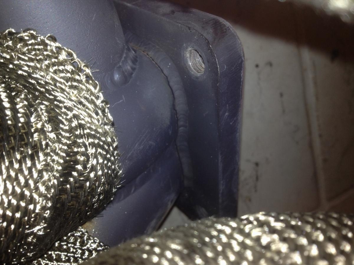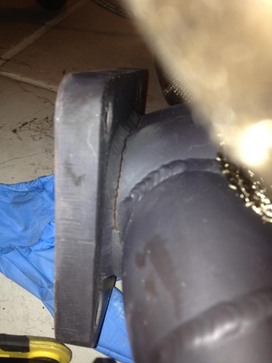 Note that I do not blame ARTech in any way. My turbo weighs exactly 50lbs. QSV weighs about 4lb, intake 3lbs, downpipe about 15lbs or so, plus exhaust is attached too. That is A LOT of weight. Plus, as you read above, high boost means high retard. That means A LOT of combustion is taking place in the manifold, turbine, and downpipe. Which means a lot of stress on the metal. Note that this is mild sched 40 biggie wall thickness.
