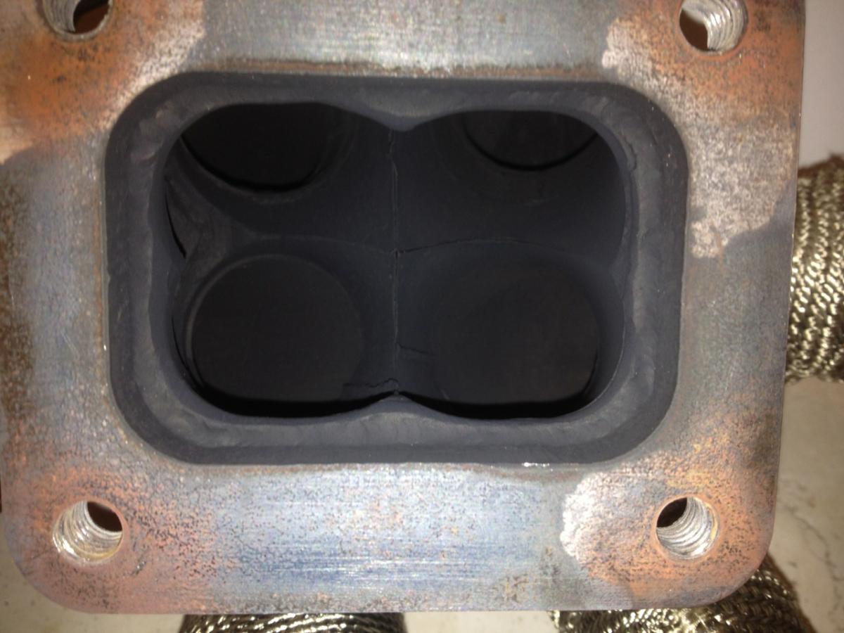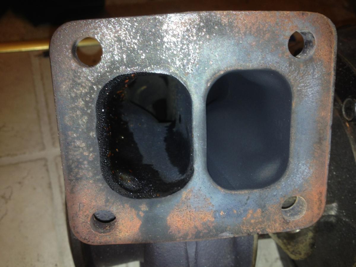 I was very sad to take it off, but oh well. I found the crack and it really is quite a big one. It goes 3/4 away around the collector flange.
