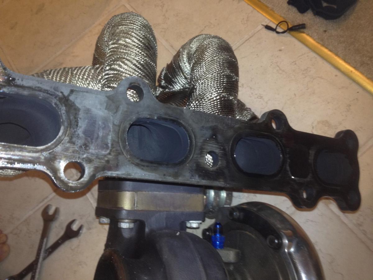 My build thread is infamous for its lack of pictures so let me try to make up for it. Here are pics of my hotside in all of its glory. I am being serious, it really is quite glorious. It just needs to prove itself. While all the parts were off, I inspected them. Turbo is, of course, totally fine and happy. This Turbo is the honey badger of my build. Quick Spool Valve is fine and dandy too. Good job Sound Performance. Tial WG is just fine too.