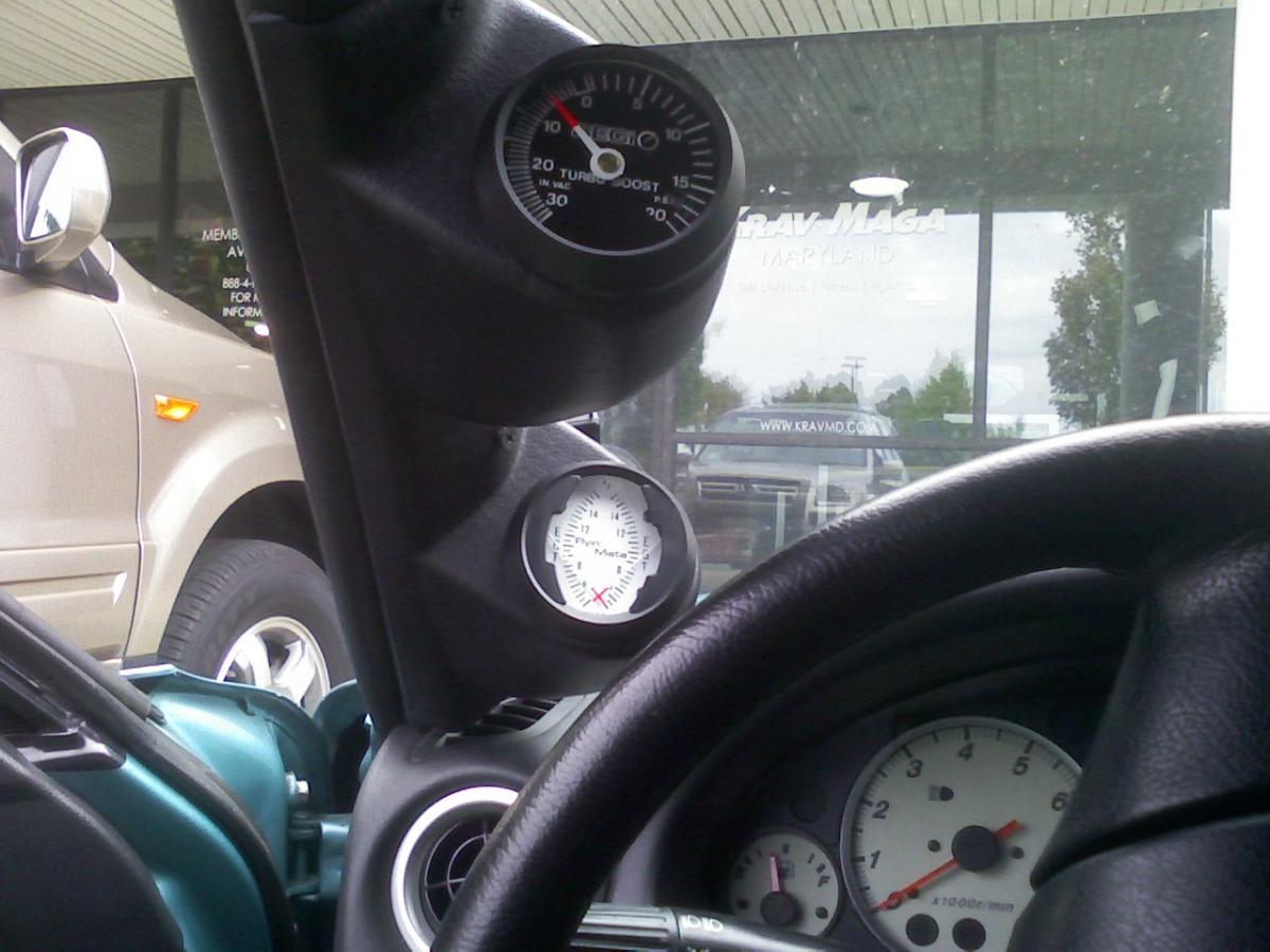 Here is my awesome gauge setup. It doesn't get any better than this. Two lovers once separated, now reunited. BEGI and FM making sweet turbo tuning love.