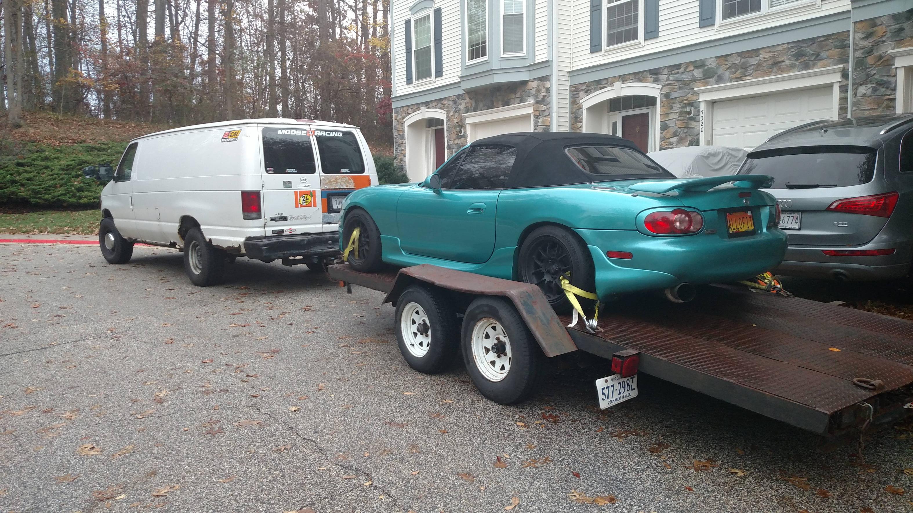 The trailer has an issue the the axles being off or something. Loading the car futher back would cause the trailer to fishtail. Thata a diesel e350 doing the towing and I hardly noticed the car and trailer back there. Not having cruise control was the biggest downer. Car is safely in my back yard.