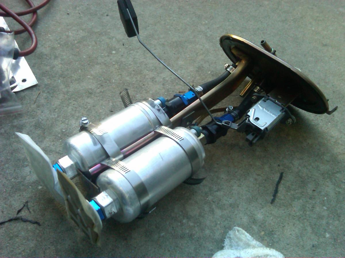 Picking up my modified fuel lid, fuel rail etc today. There wasn't enough room on the lid for the dual feed, the return, AND the power grommetts which are about 1.25" diameter FTL. So, I'm just going to run the stock wiring and relay for power to the pumps. Oh well. Two pumps should still provide than enough fuel even without better wiring.