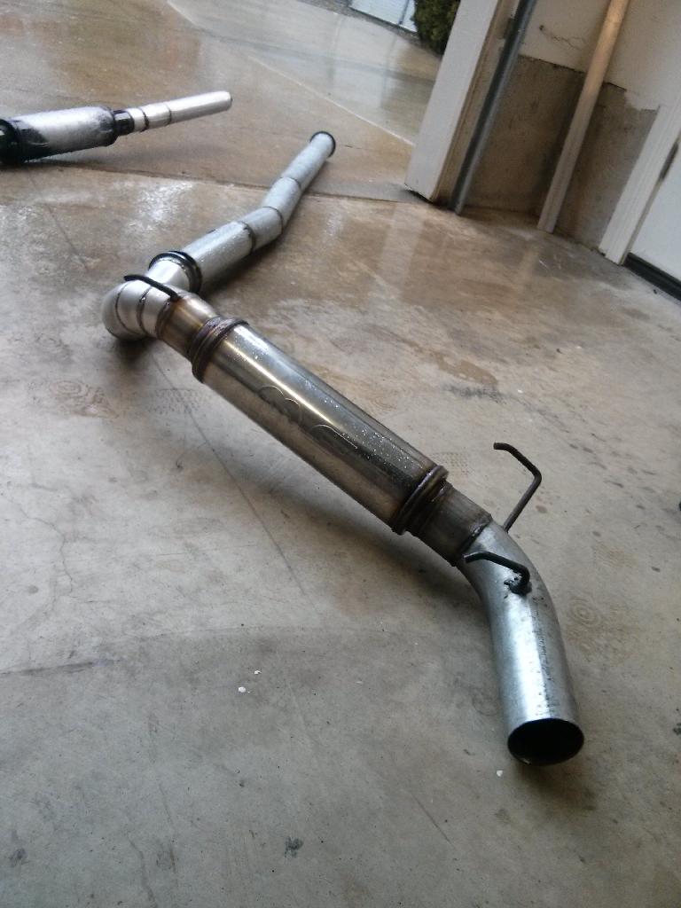 I kept the 2.5 stainless downpipe and built a 3" aluminized steel exhaust with 2 v bands and a magnaflow straight through muffler. It's loud.