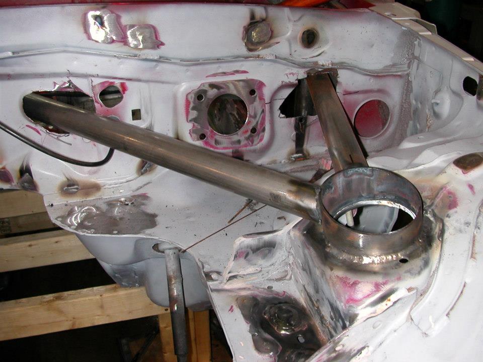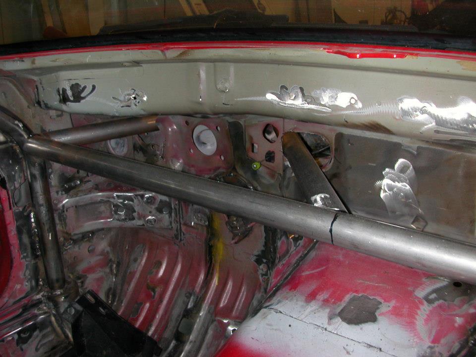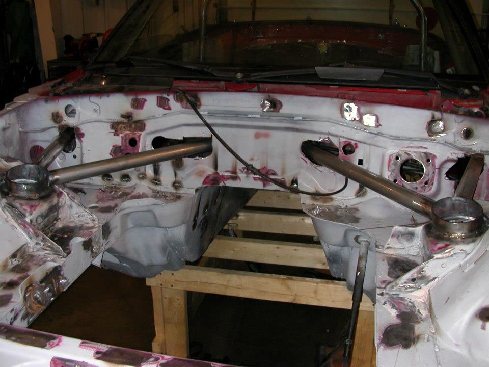 Are you going with a custom pedal setup? Like Wilwoods with the reservoirs on top? Because those are sexy. When doing my cage I was going to tie into the front shock towers but didn't want to mess with the pedal situation and I didn't want to loss my blower motor. Looks cool though, I like the x bar at the top, Troy does have a point about the harness bar though.