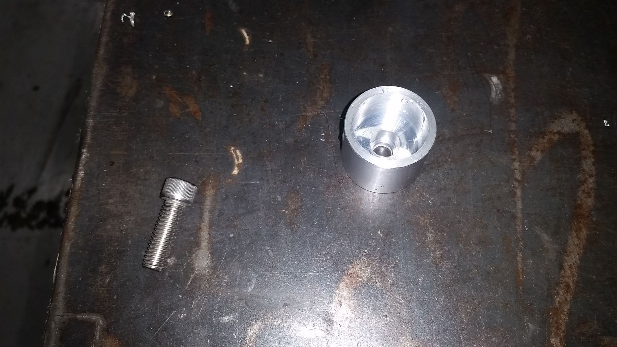 The mount. Then the mount with the Allen bolt pressed in. .020 interference, so I had to use some heat...