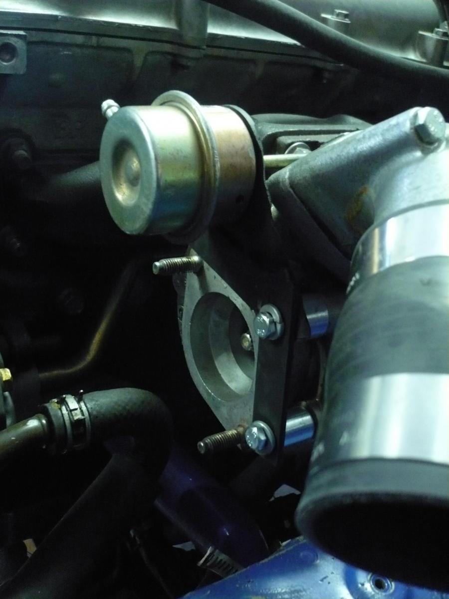Curly, this ones for you. My upgraded wastegate bracket. Once bolted in place I tested it. No flex, at least not enough to worry about. Greatly improved from the earlier revision.