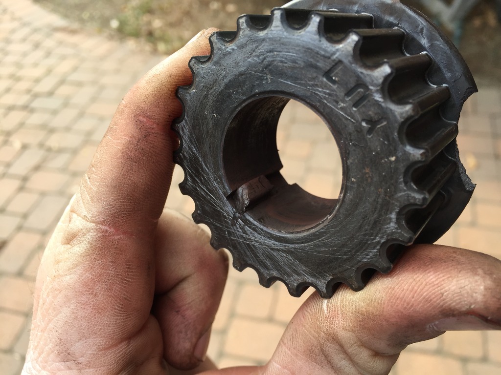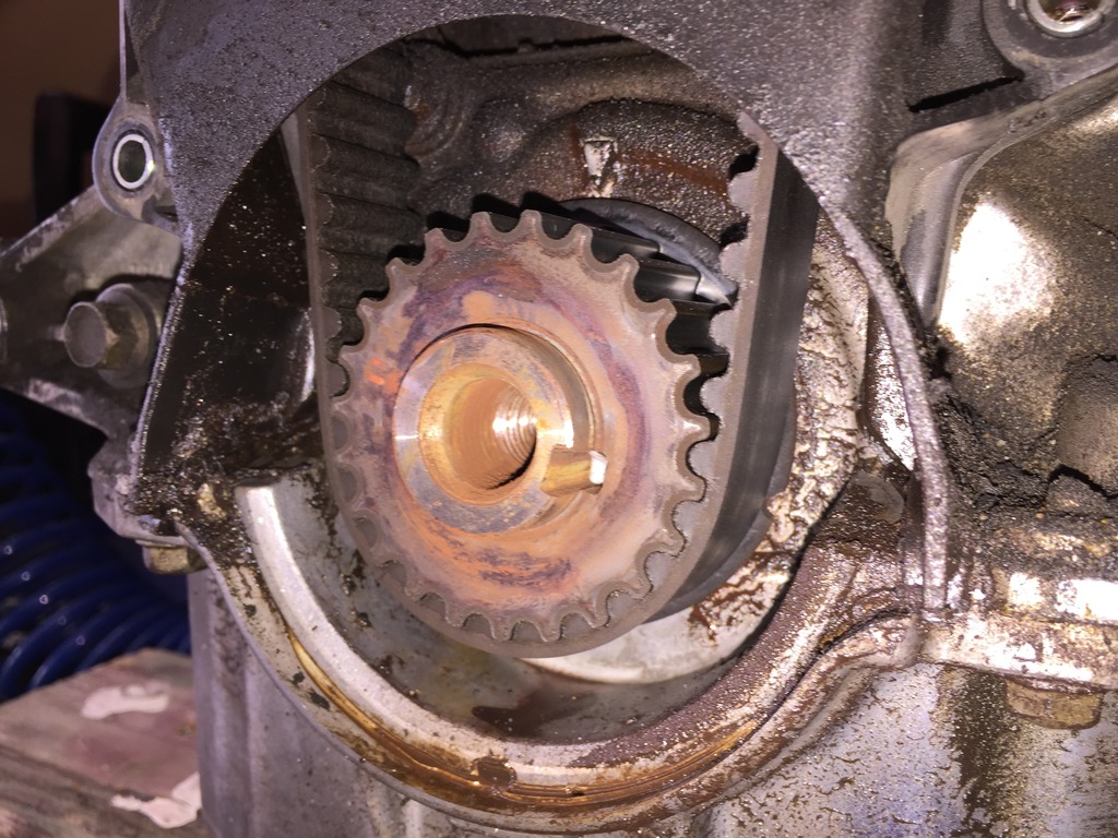 So bad news. Car was runny poopy on the top end. Then running poopy everywhere. Finally wouldn't even idle right. Checked timing with a light and it was a lot retarded. Pulled the belts and pulley and found...