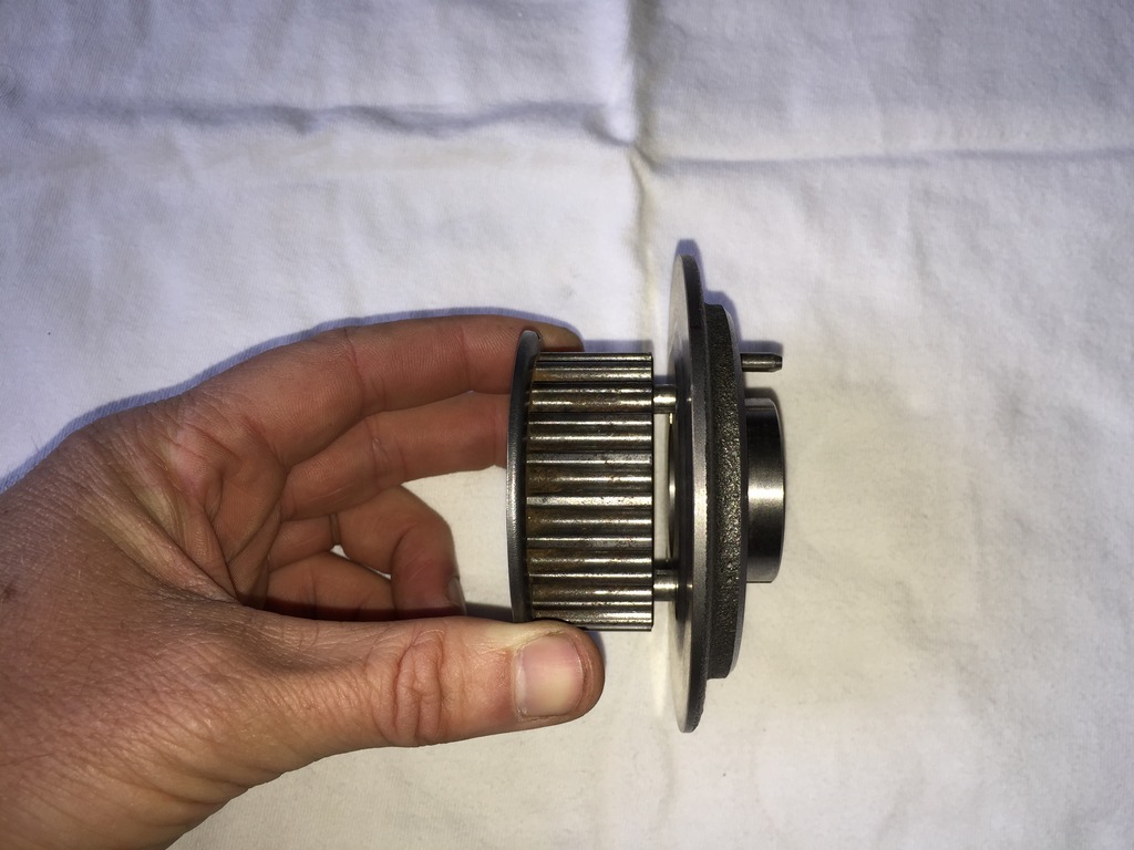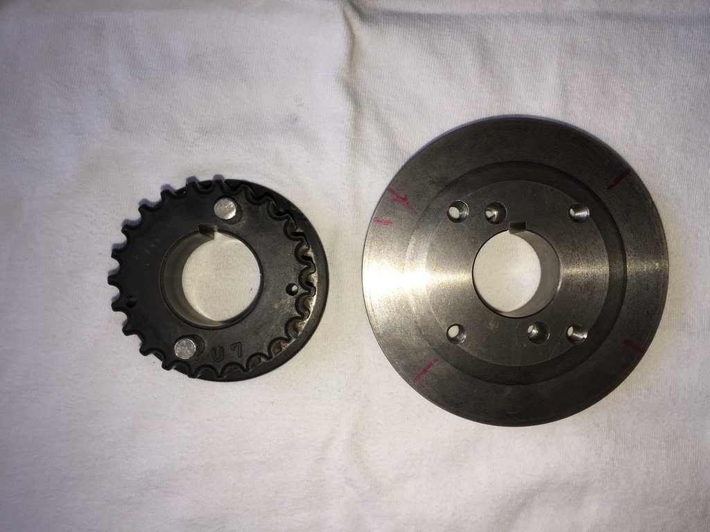 Just a little spud with a keyway. So that we could hold the timing gear and crank pulley boss together like this...