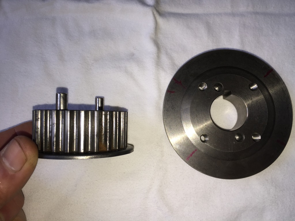 Pressed the pins into the timing pulley and milled them to length.