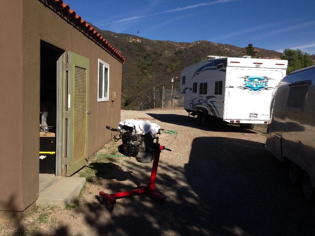 And now, the great migration north. While other BP's are making there way onto engine stands all over the world, this little guy is making the trip from it's birth place in the build room north, all the way home to the drive way. It's a long uphill trip across vast expanses of gravel and cracked blacktop.