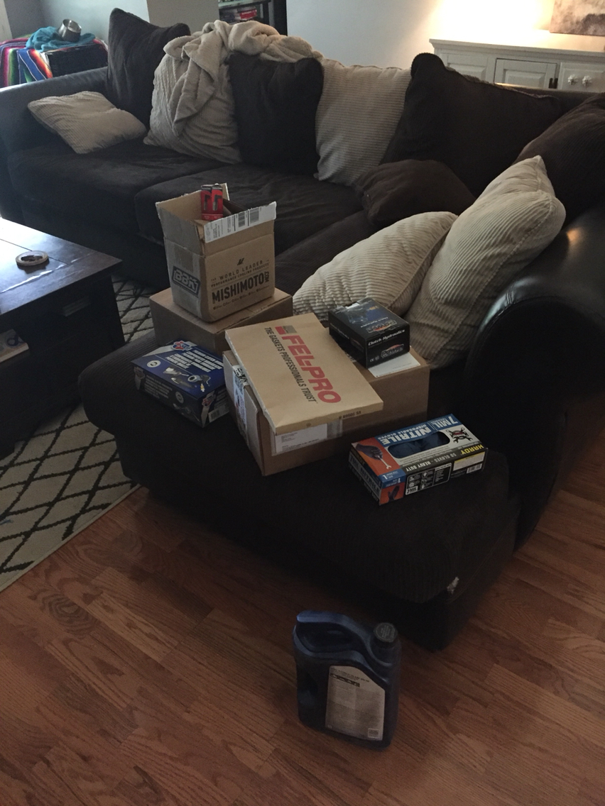 Slave and master cylinders replaced, stainless clutch line, line bled, valvecover gasket, and most importantly the oil change. The car is so much happier and I feel much more confident driving around.