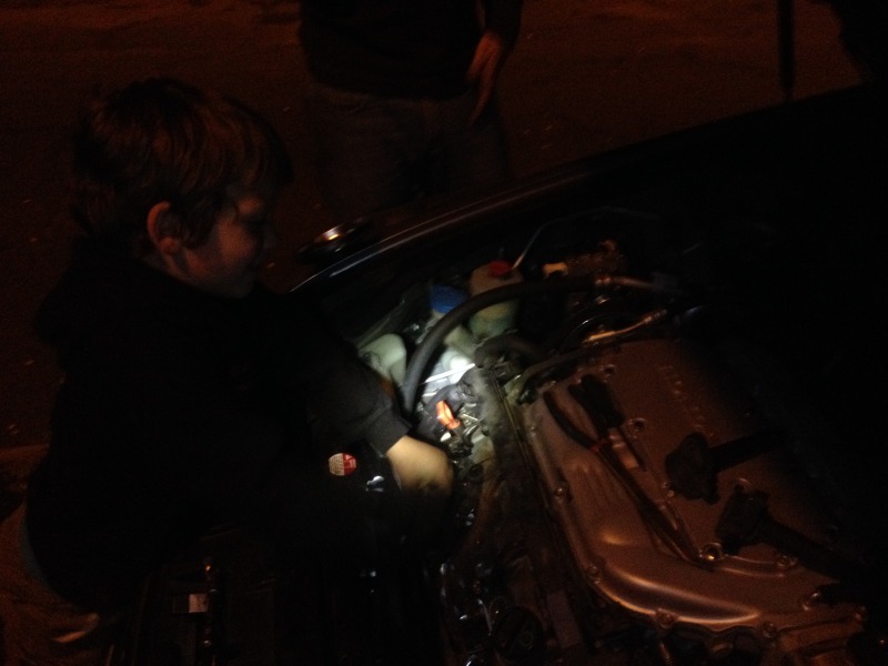 Hustlers car broke down 60 miles south of my house but he was able to limp it here. The next night we had my son do his plugs while we slammed cheap whiskey.