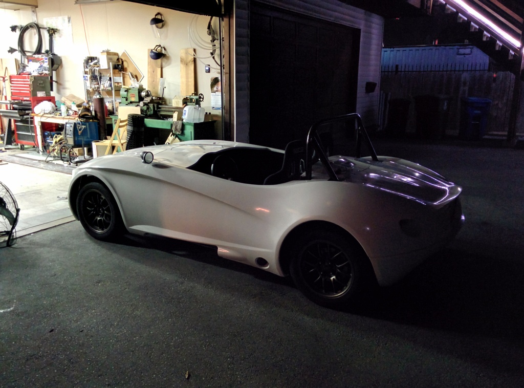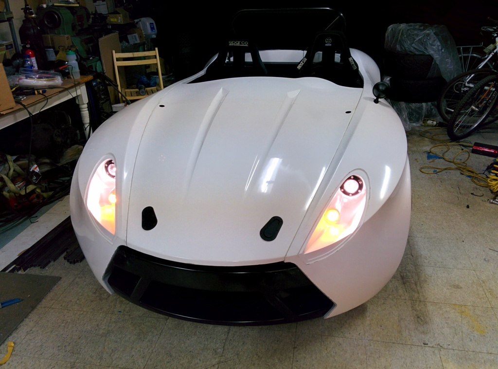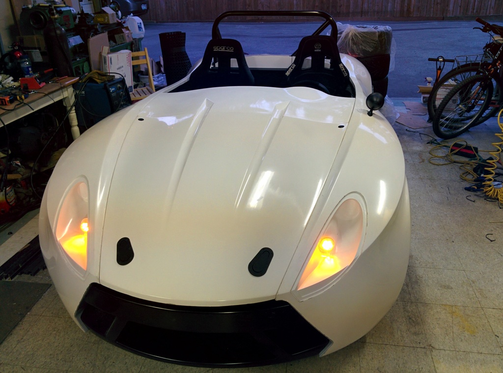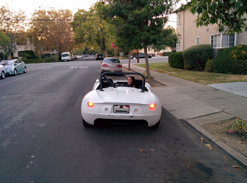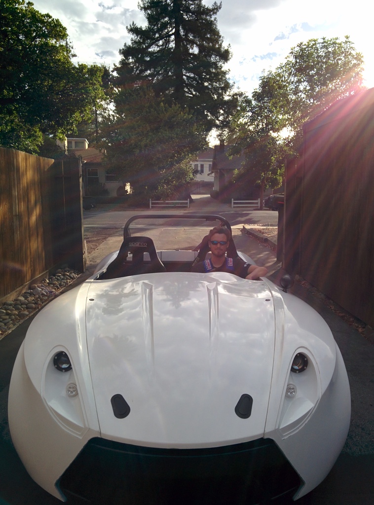 Got the hood mounted, 2 aero catches in the front and 2 quik-latch mini's near the dash area. With most of the body panels attached and the tail lights working, it was time to take it for a quick spin around the neighborhood.