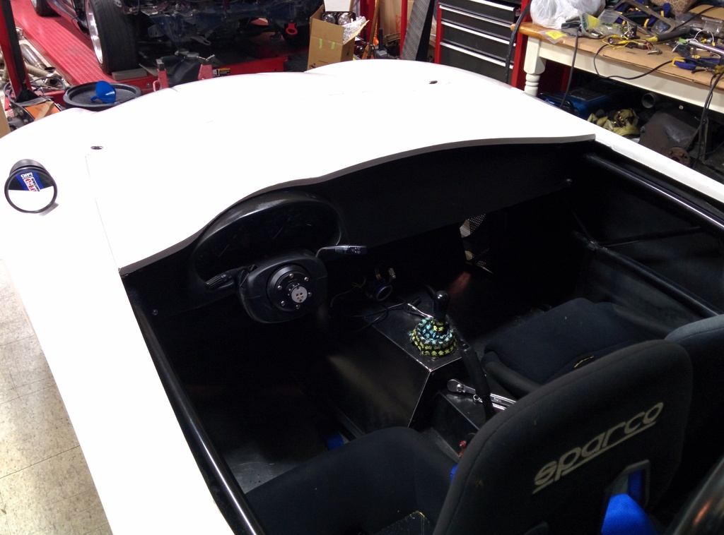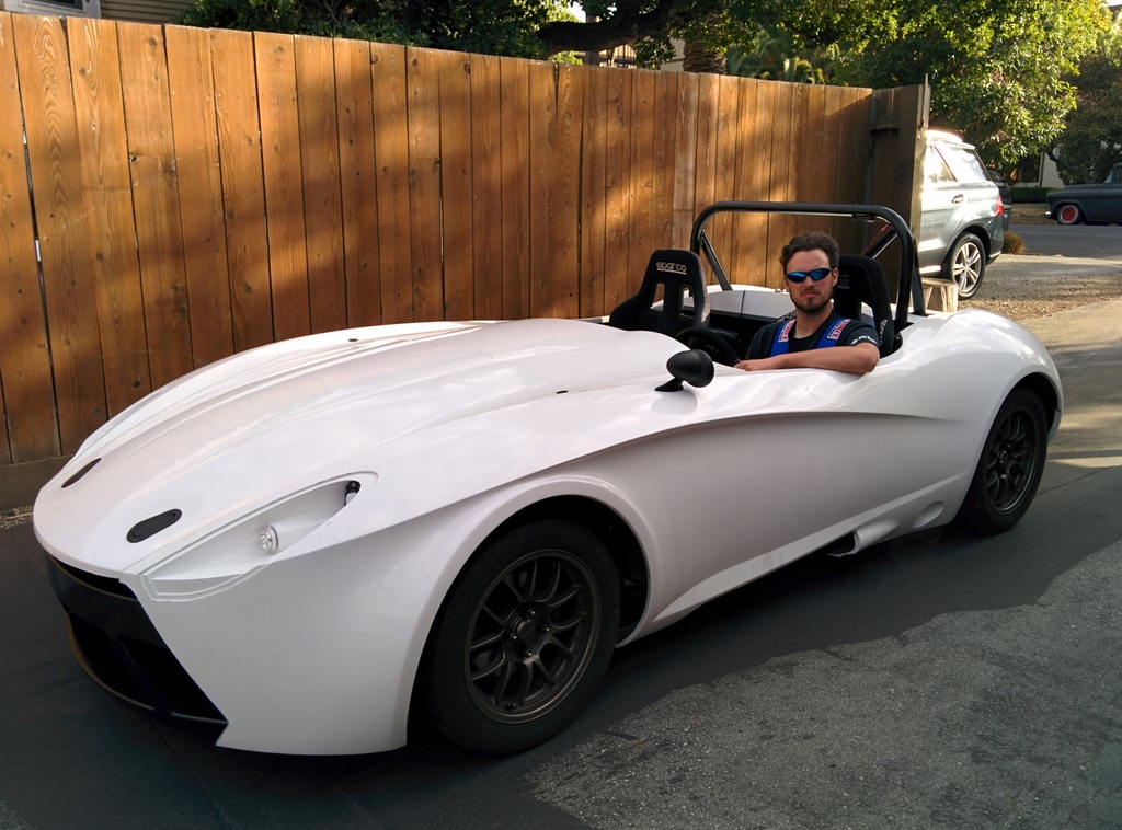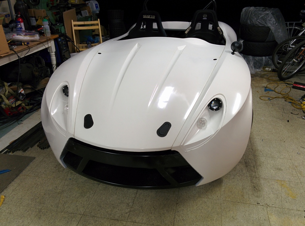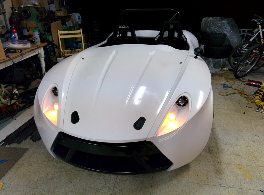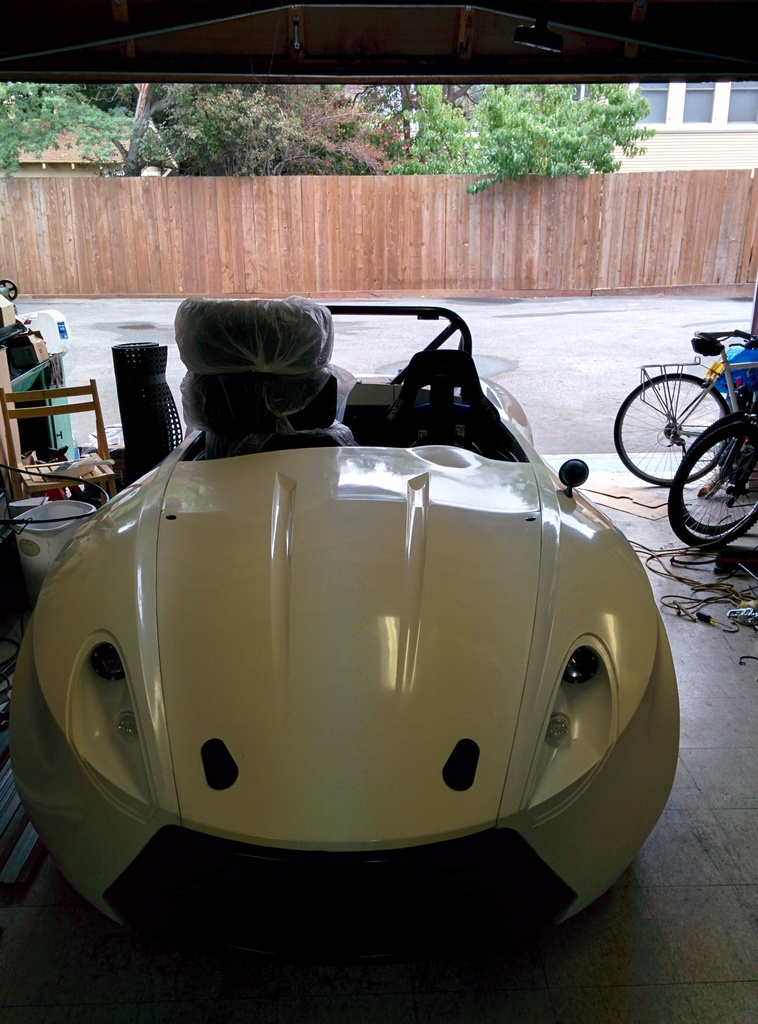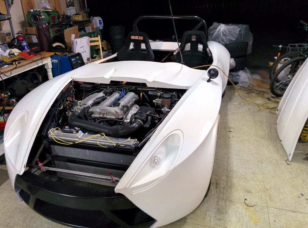 Got the hood mounted, 2 aero catches in the front and 2 quik-latch mini's near the dash area. With most of the body panels attached and the tail lights working, it was time to take it for a quick spin around the neighborhood.