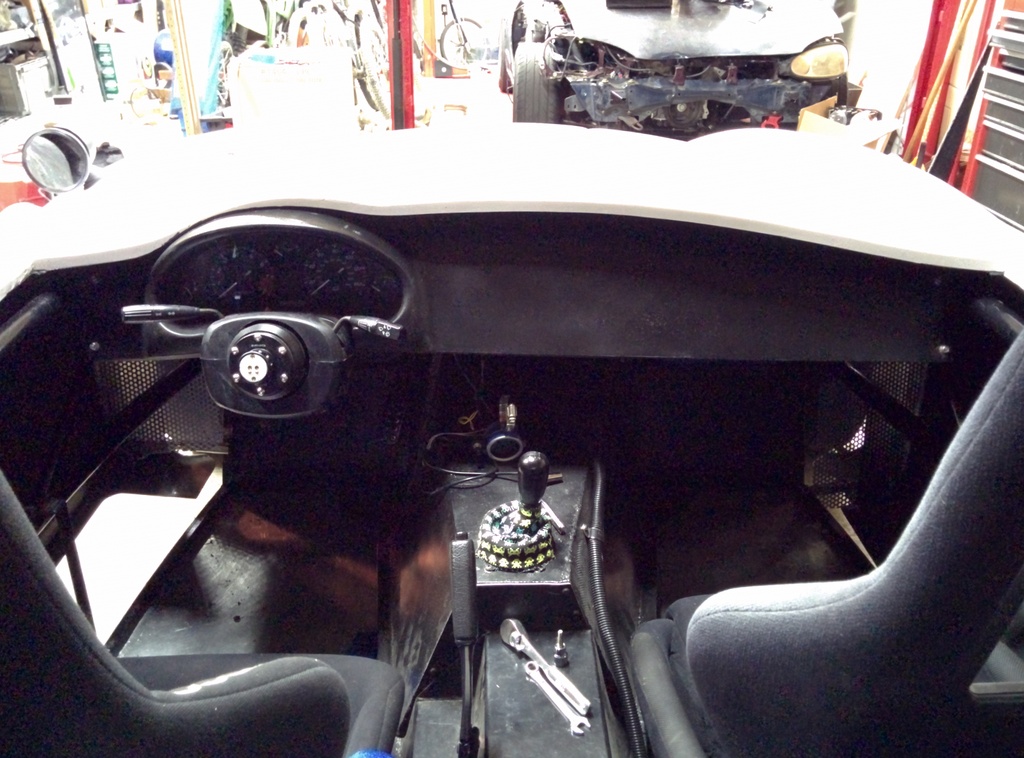 Also started working on mounting the dash cover panel. Strange seeing the car like this as its been off for most of the body mounting. Also I'll fix the wiring running over the radiator