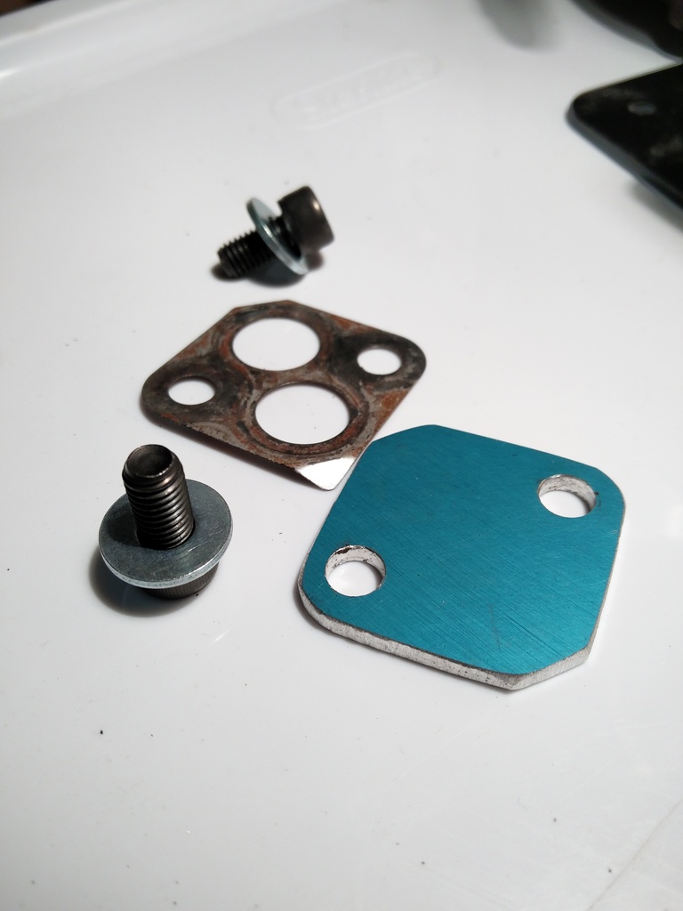 I left the EGR valve off so I could make a block off plate as I already have the EX manifold plug blocked and a plate where the other side of the EGR pipe connects to the IM. I wasn't really thinking about the fact that this means I now have a 1/2" hole right into my IM plenum...