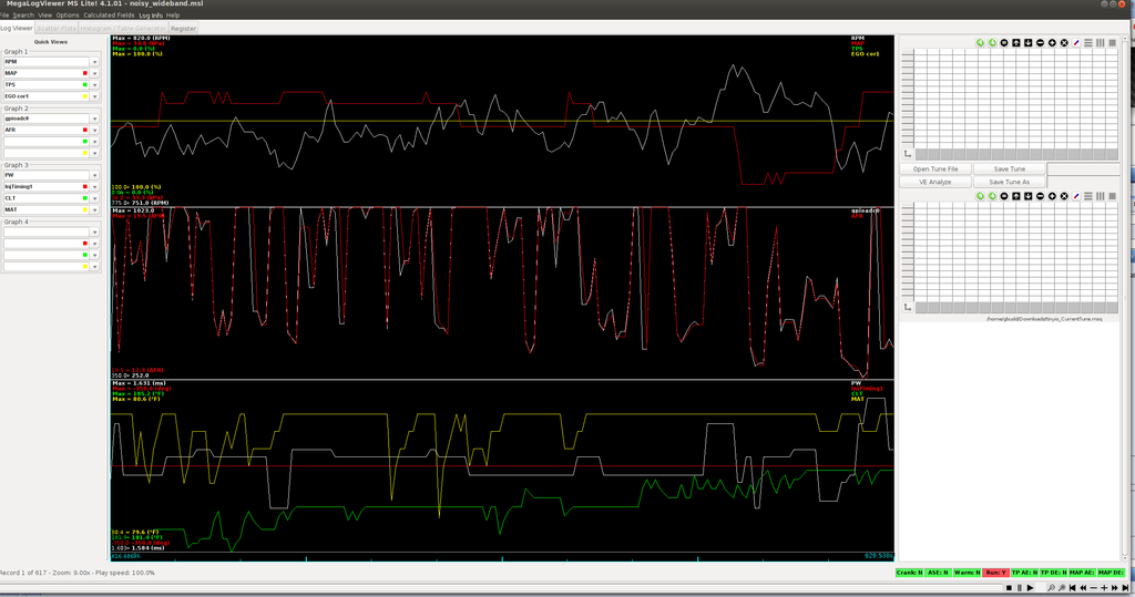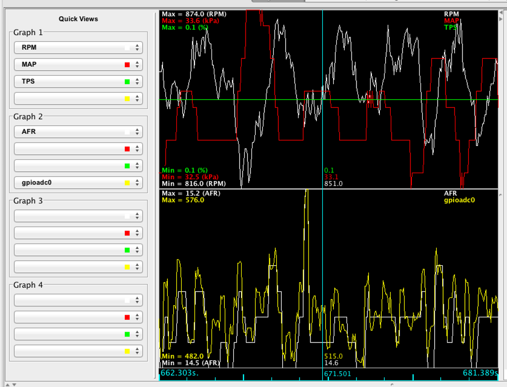 With the LC1 attached via canbus, I was hoping to end up with nice smooth AFRs. But no, they're ugly and bounce around like crazy :( middle graph is AFR and gpioadc0 (canbus input for the LC1).