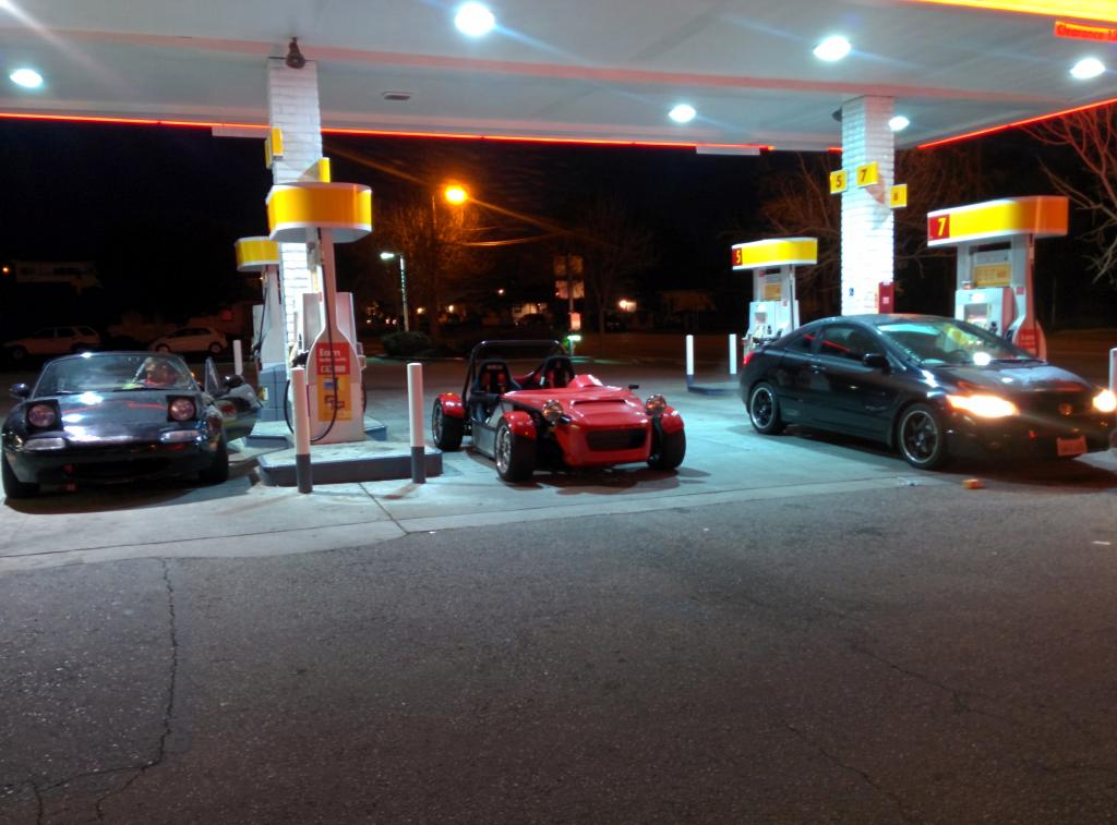 I had TC Design install a fuel cell, remount the seats, and fabricate an exhaust. I've almost finished redoing the lighting, front and back. (Haven't mounted the new front setup yet, but it's pretty sweet except for blocking hood removal. :( ) I trimmed a lot of the the wiring harness. Installed a radiator shroud that is thinner than the old stock fans, hopefully leaving me room for proper isolation mounts. I think the current radiator is cracked due to virbration and not holding pressure, though it might be the radiator cap. Installed a wink mirror and some better side mirrors that I'm still not happy with. Replaced the corded R-comps with some Z2s. I'm most of the way through the CA DMV crap that I started last June. The BAR station forgot to call me back about a month ago. I visit them again next week to get my stamp / plate / whatever, then it's back to the DMV for proper plates. (Assuming they don't realize I never got the brake and light inspection.) The brakes (01+ sports w/ carbotechs) are ridiculously touchy and need to be downgraded. The suspension (spec miata) is way too tight for such a light car and needs to be replaced.