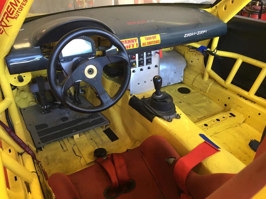 The (short) list of what we’re working with: stripped/seam welded/caged tub, Cosworth 2.3L dry sump engine, Jenvey intake manifold/TB, turbo system, side-exit exhaust, Motec ECU, custom wiring harness, rear-mount oil cooler, AIM Dash, Tilton pedal set, Ohlins R&T Race coilovers, Enkei RPF1 18x10s…