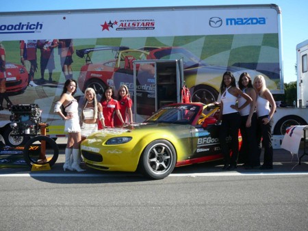 Basically, Intl Allstars (is that a name from the 90's or what?) was a formula drift team with backing by Mazda N.A. which explains the budget level of the build. We're talking about the early days of drifting in the US a decade ago. If you look them up they still have old vids with the cars, with a super cheesy fast and the furious feel to it all.