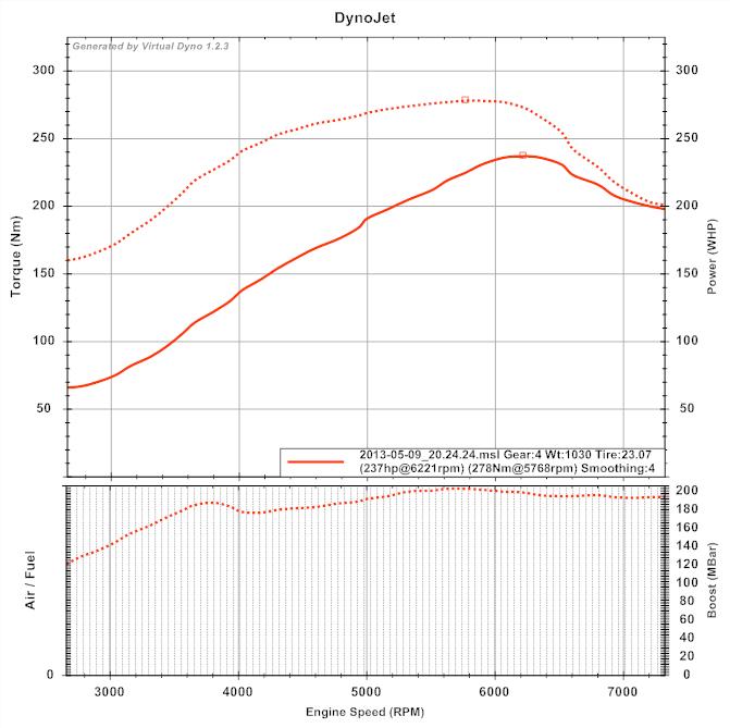 I'm driving with 0,7 to 0,8 bar boost pressure. If i raise the pressure the iat:s start to raise fast and I'm not getting not much more power (10-20hp for 0,2-0,4bar).